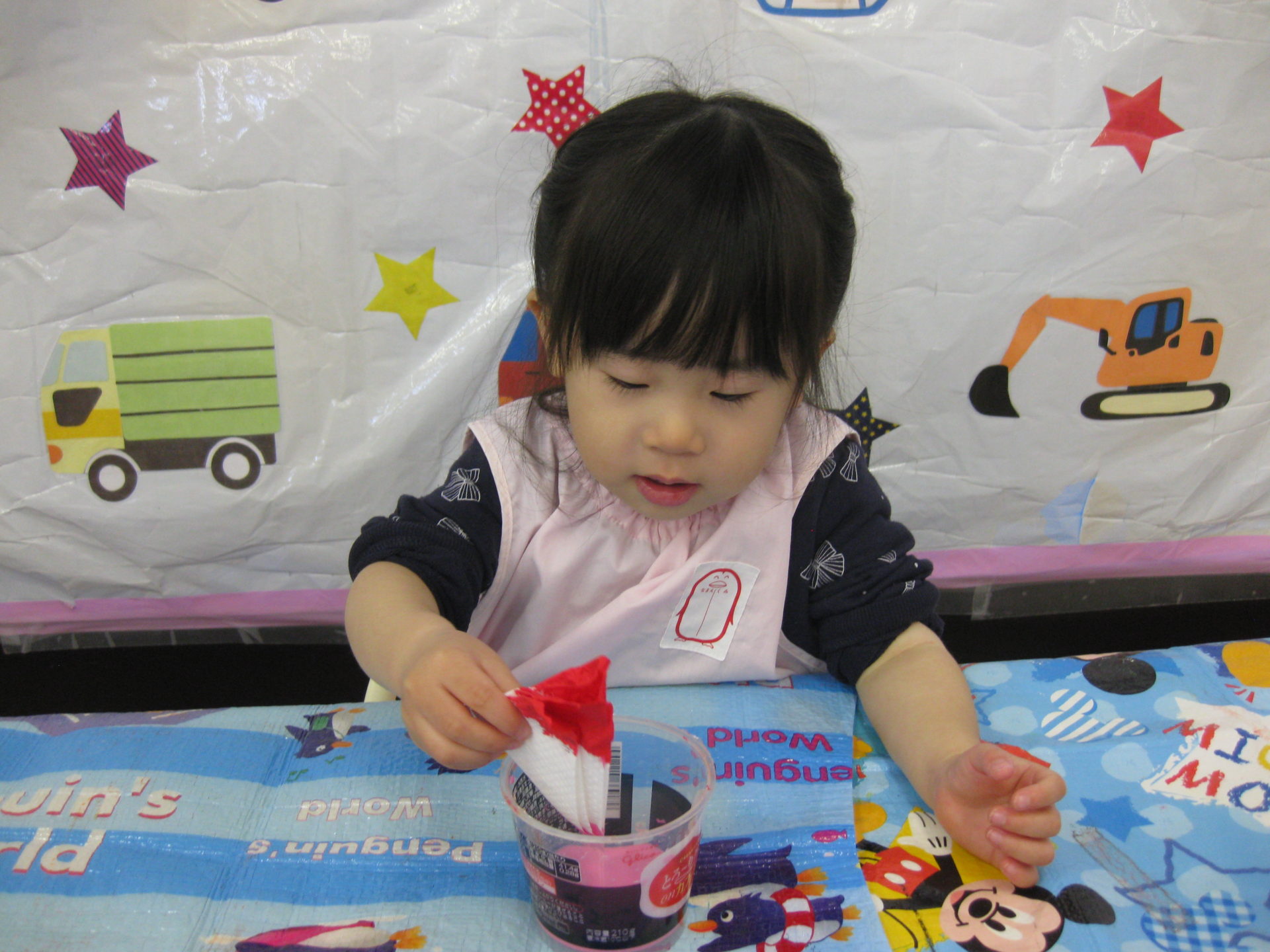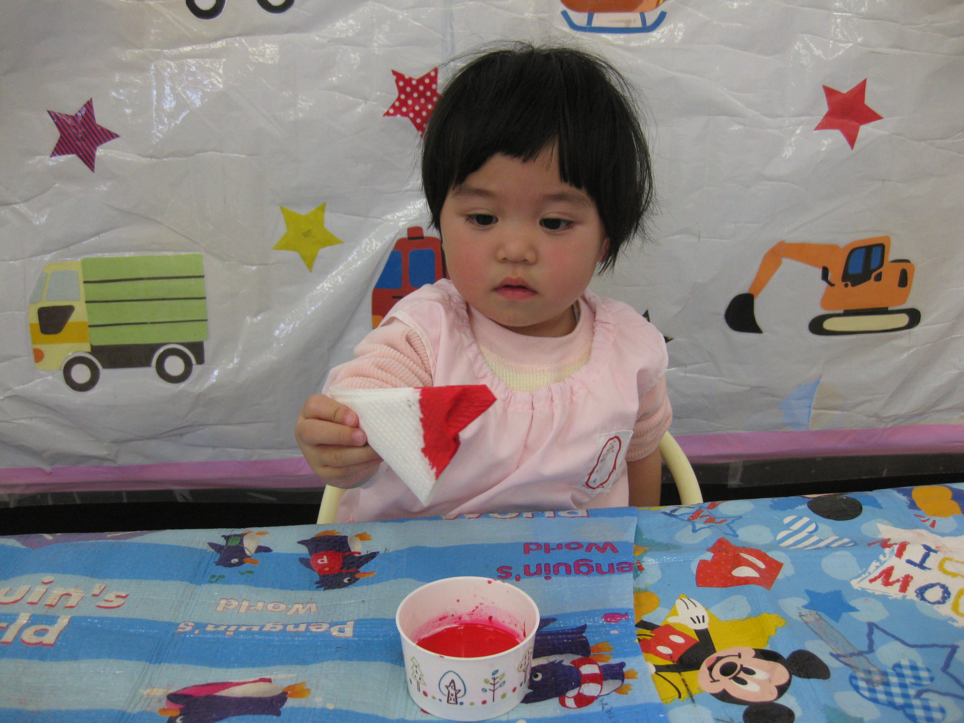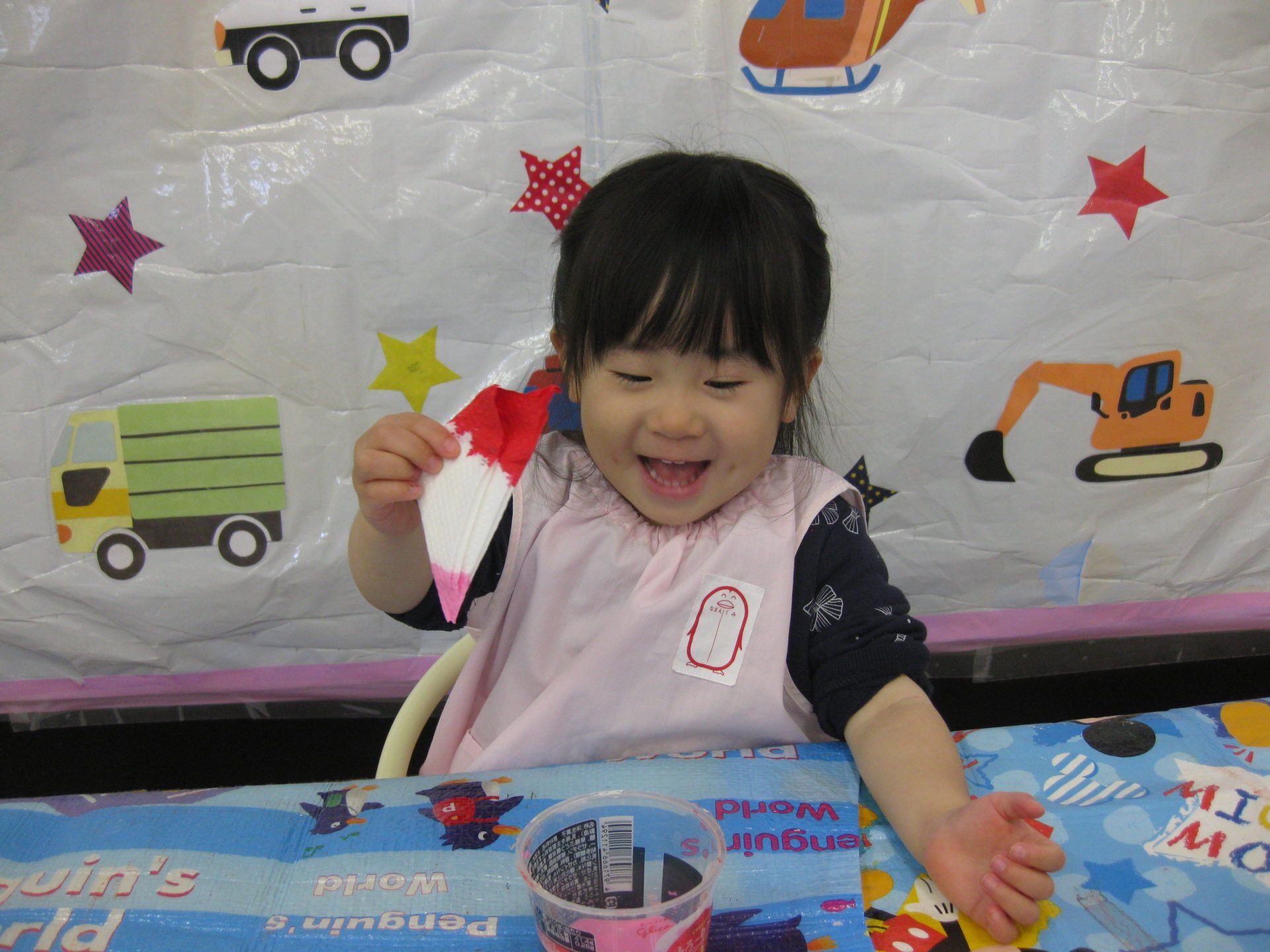 紙に少しずつ色が染まっていくのを不思議そうな顔で見ていましたよ😆
