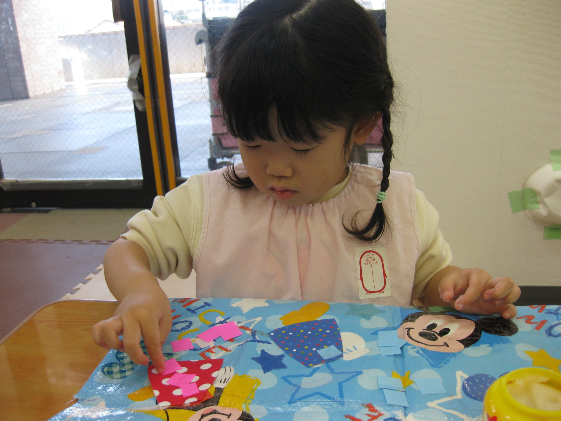 こあら組のお友達はハサミで折り紙を切り、糊でお洋服に貼りましたよ。