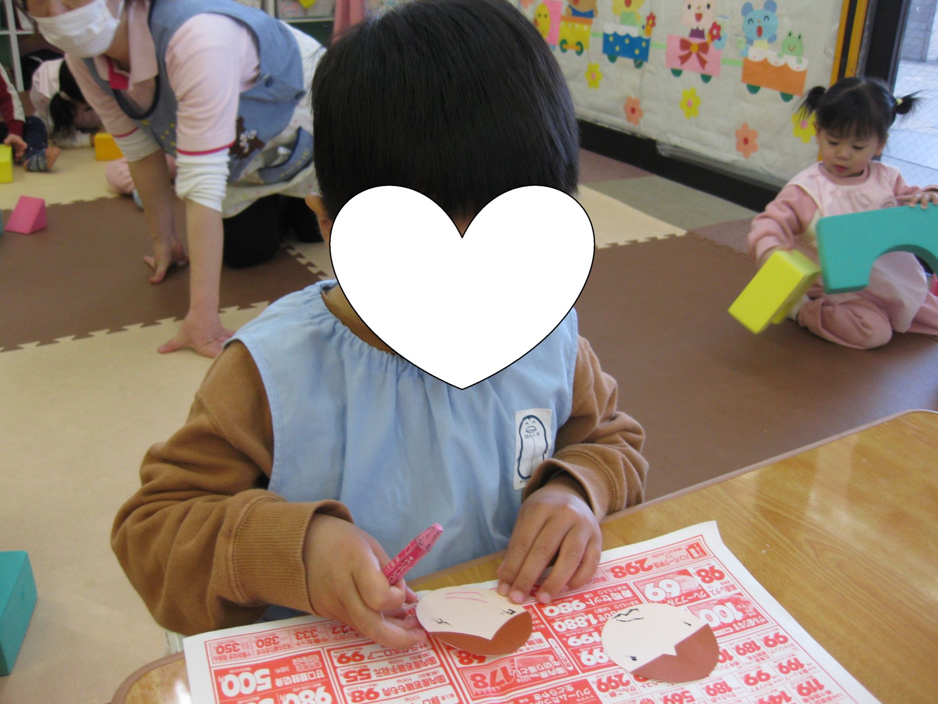 こあら組さんはお雛様のお顔を描きました🌟お目目とお口をクレヨンで描いて、とっても可愛いお顔が出来上がりましたよ🥰