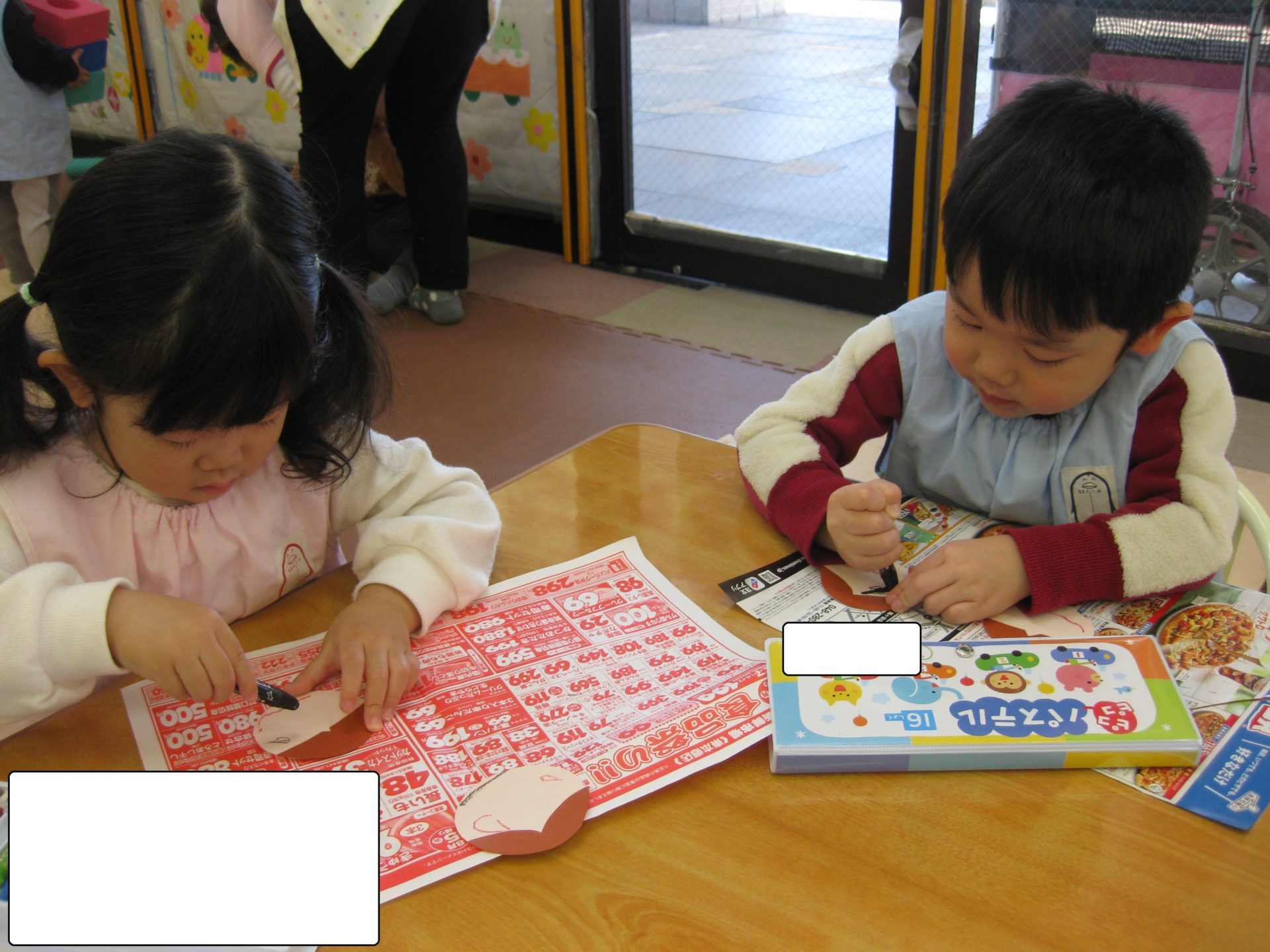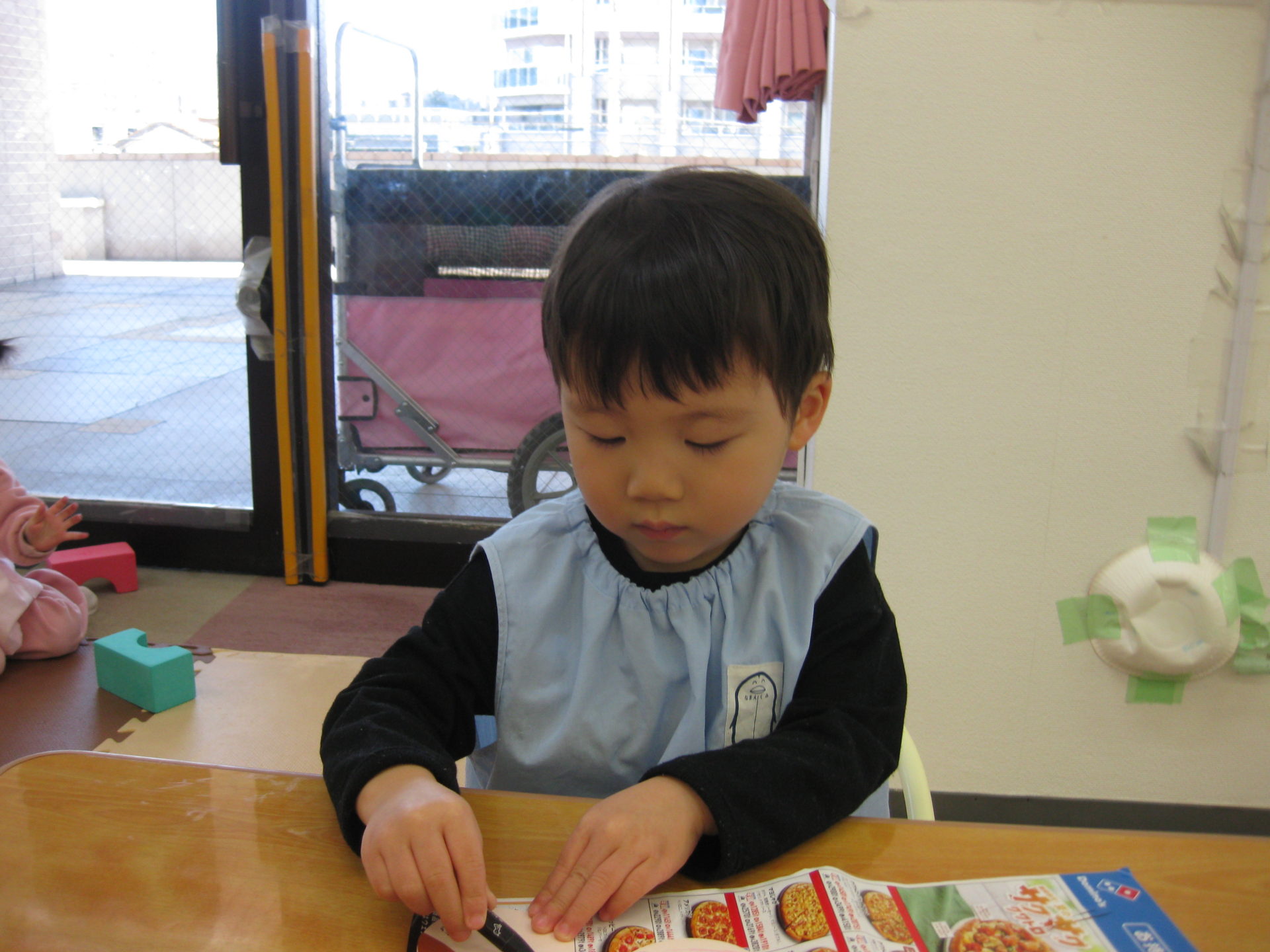お休みしていたお友達もお製作をしましたよ😊とっても真剣な表情ですね!