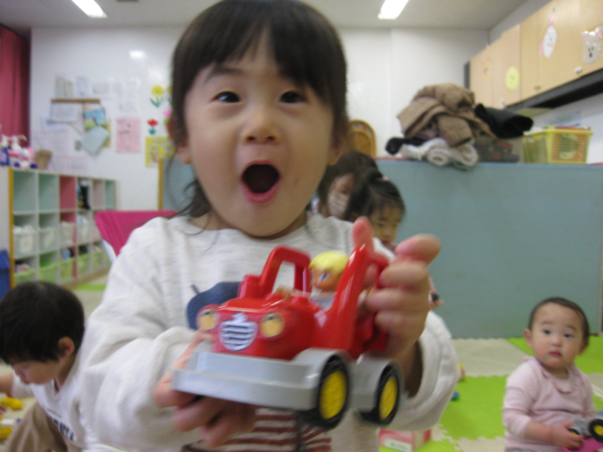 ひよこ組・うさぎ組のお友達は園周辺をお散歩した後、第1保育室で遊びました😉