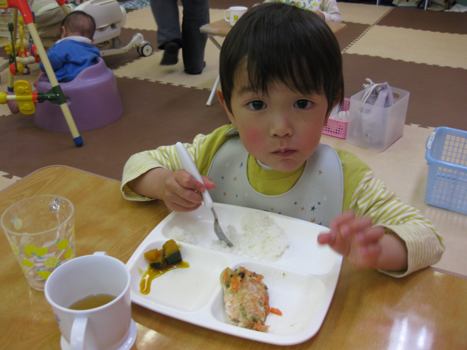 この後は大好きなお給食の時間です😋大きなお口でパクパク。あっという間にお皿が空になったこあら組さんです!
