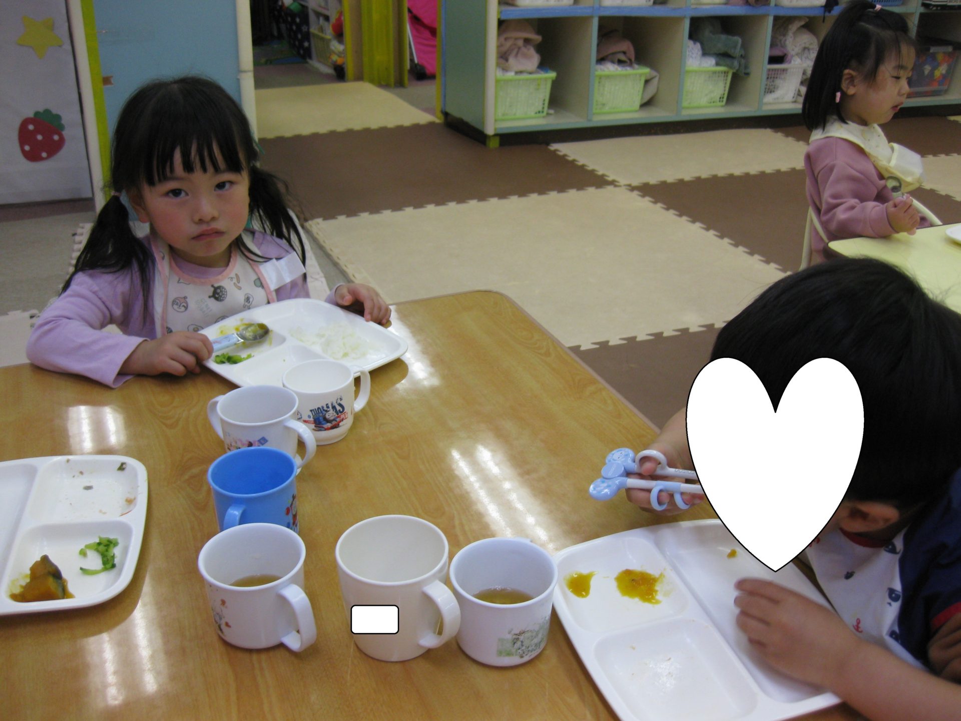 ひよこ組のお友達も自分で上手に食べれるようになりましたよ😘お口の周りが可愛いです💕