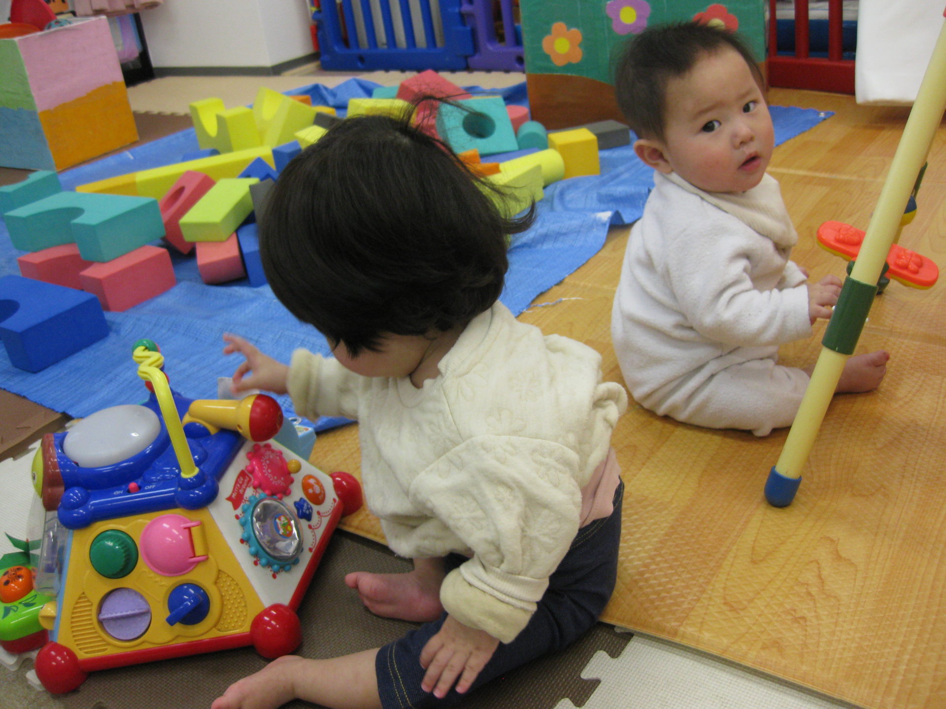 最後に最近お座りで遊ぶ事ができるようになったひよこ組の小さなお友だちです👏🥰