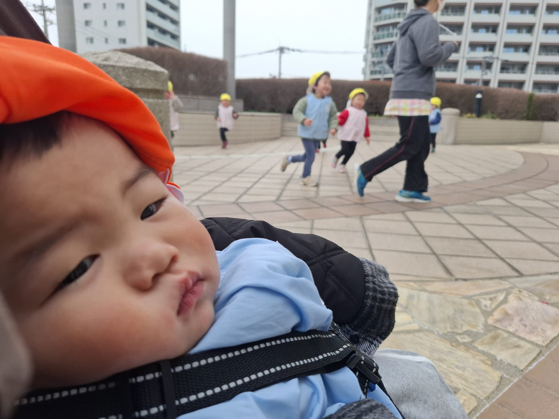 ベビーカーの座り心地が良くてウトウトしてきたようです。。zZ