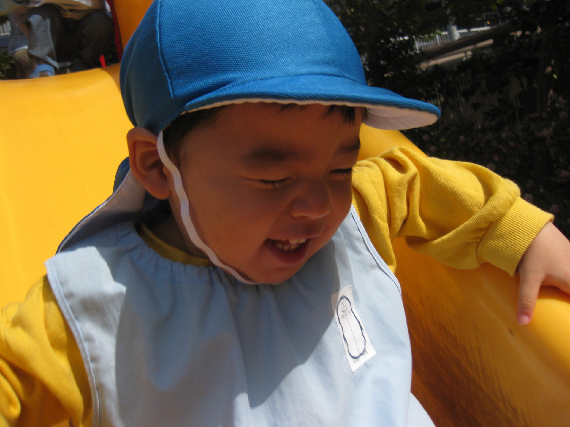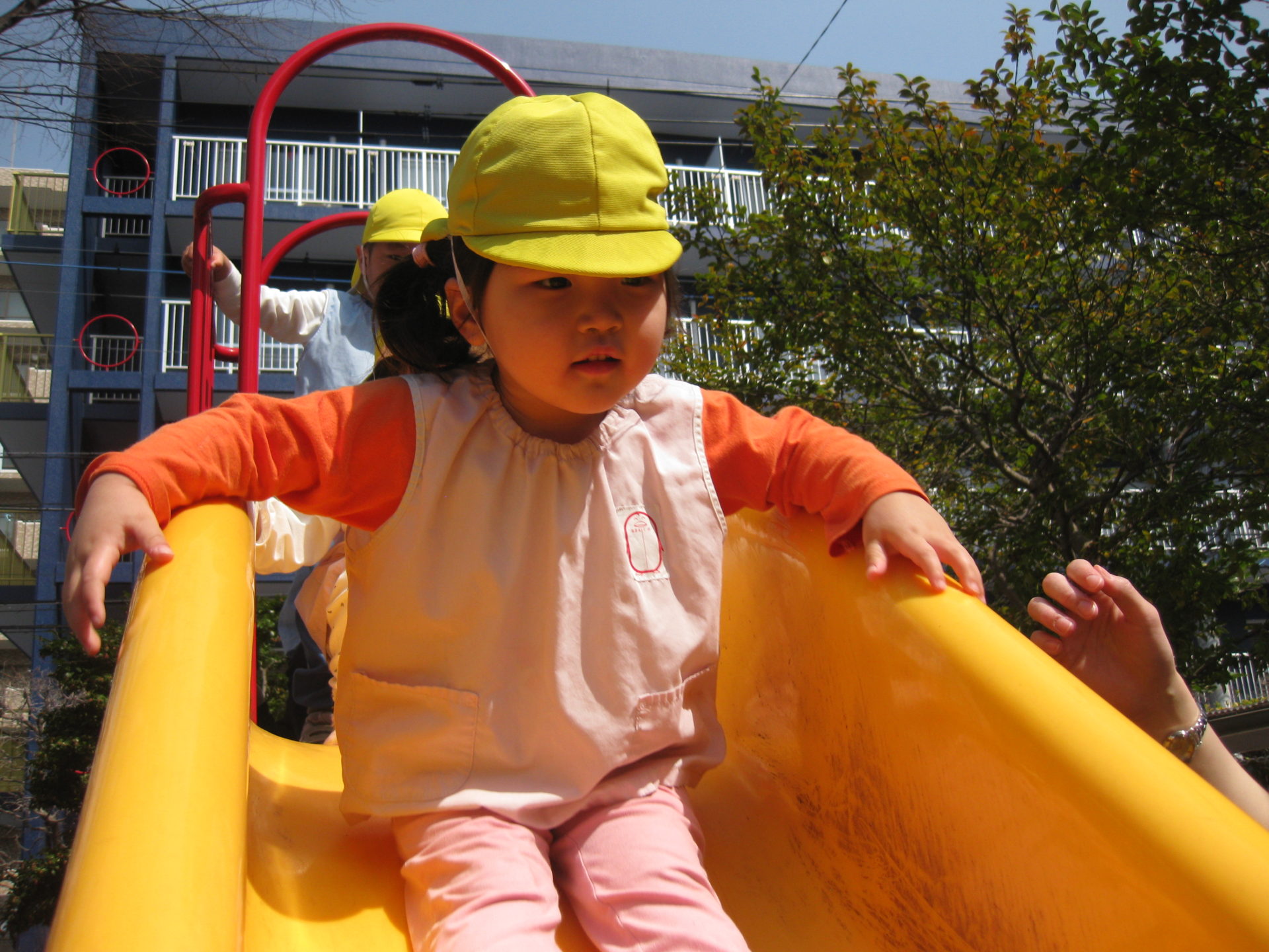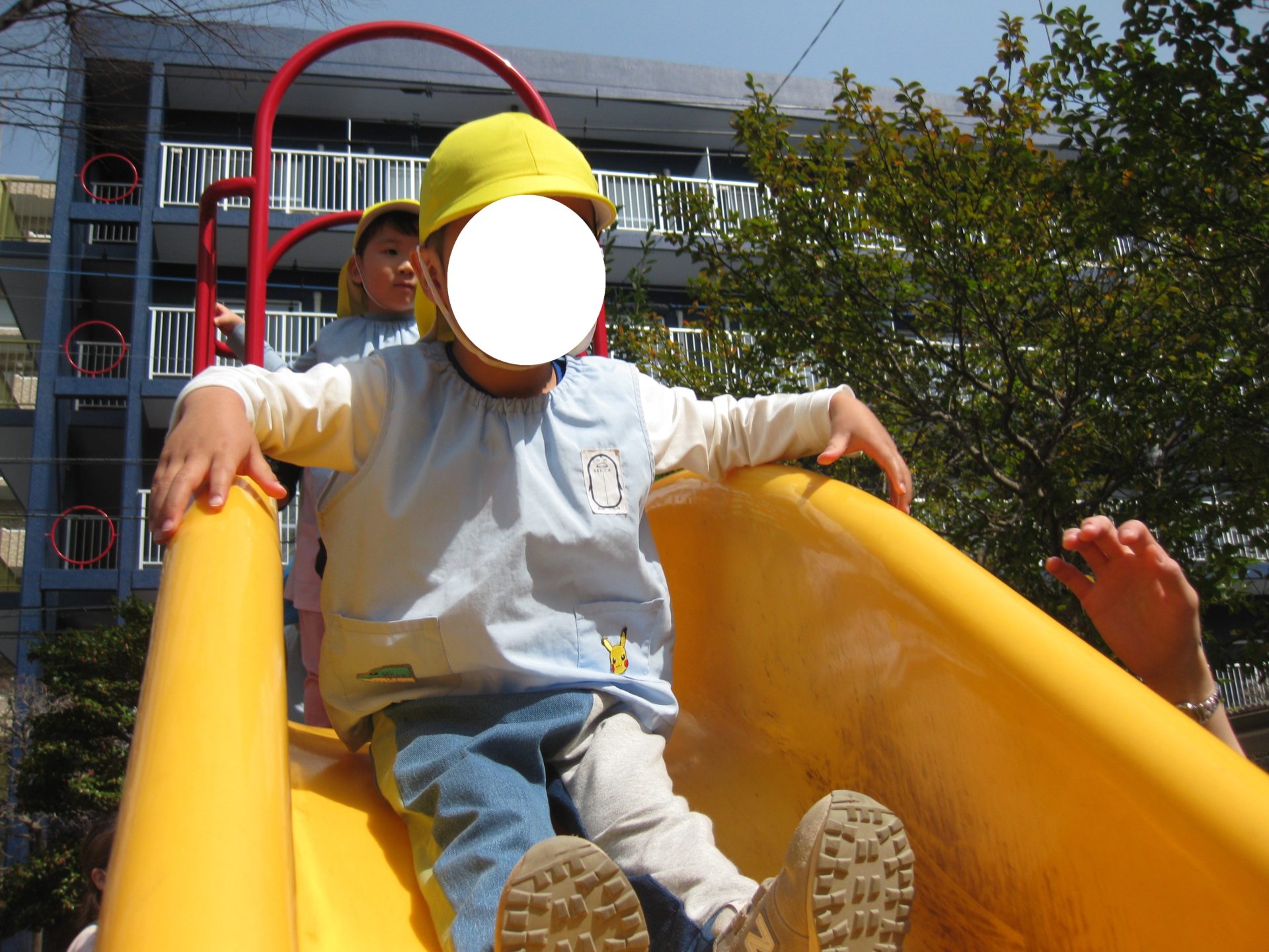 前のお友達が滑り台から降りるまで、早く滑りたい気持ちを抑えて待っている様子が可愛らしかったです💕
