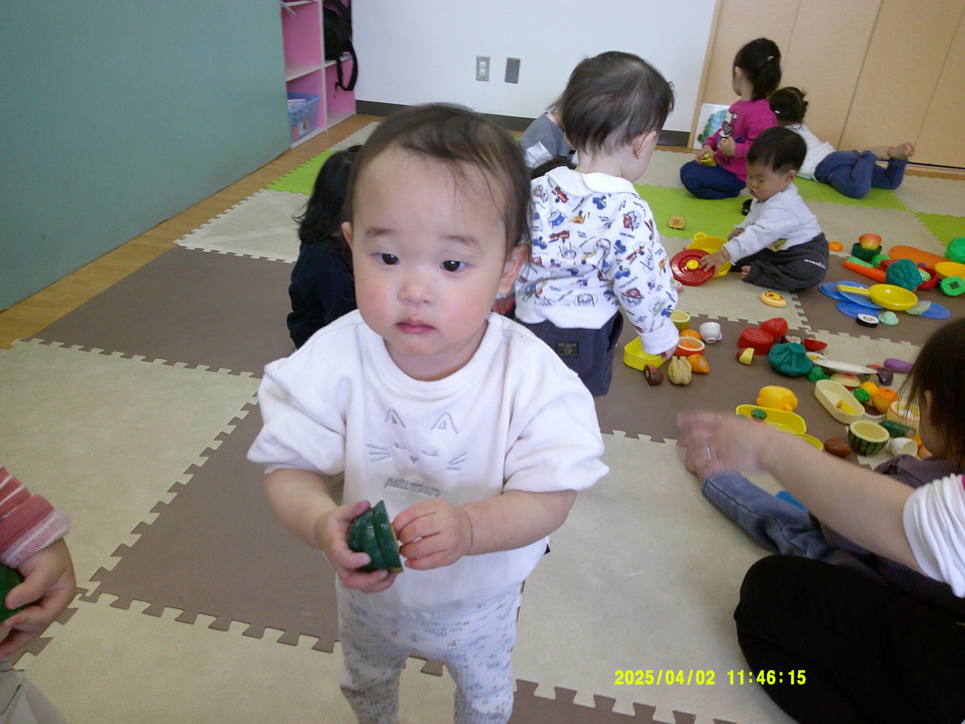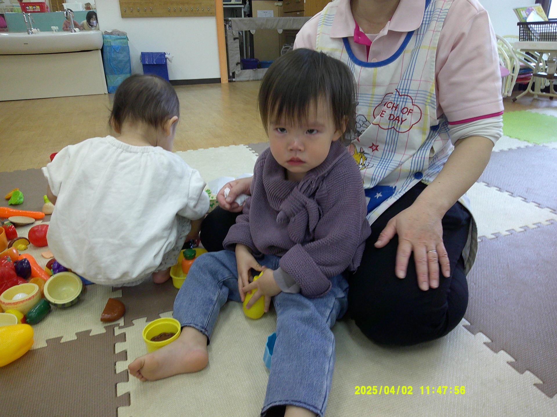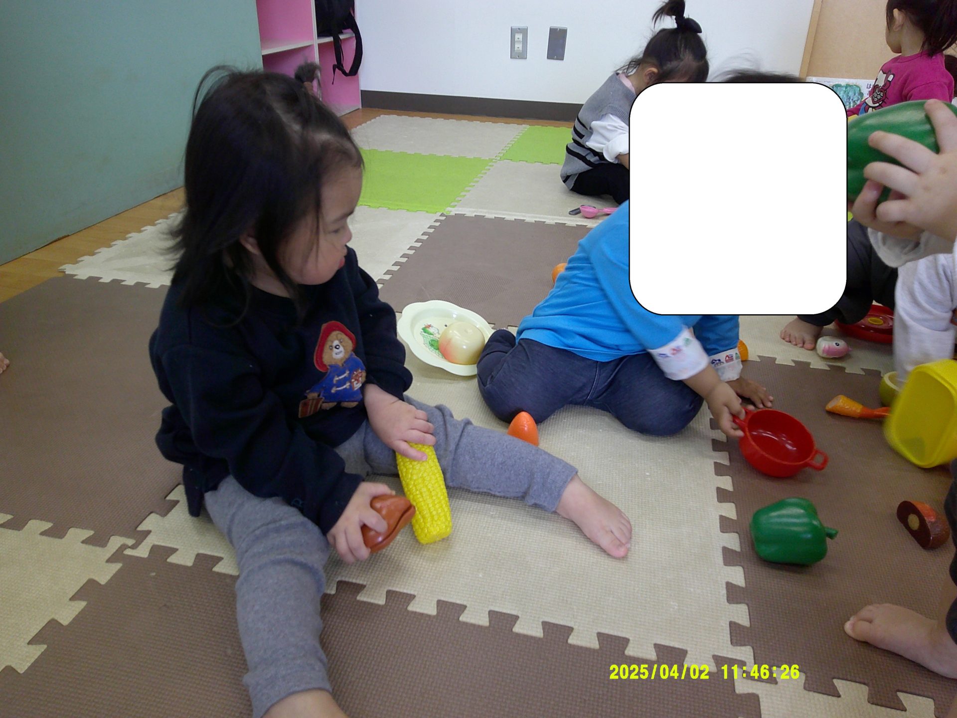 おままごとを出すと、涙だったお友達も泣き止んで遊び始めていました👍