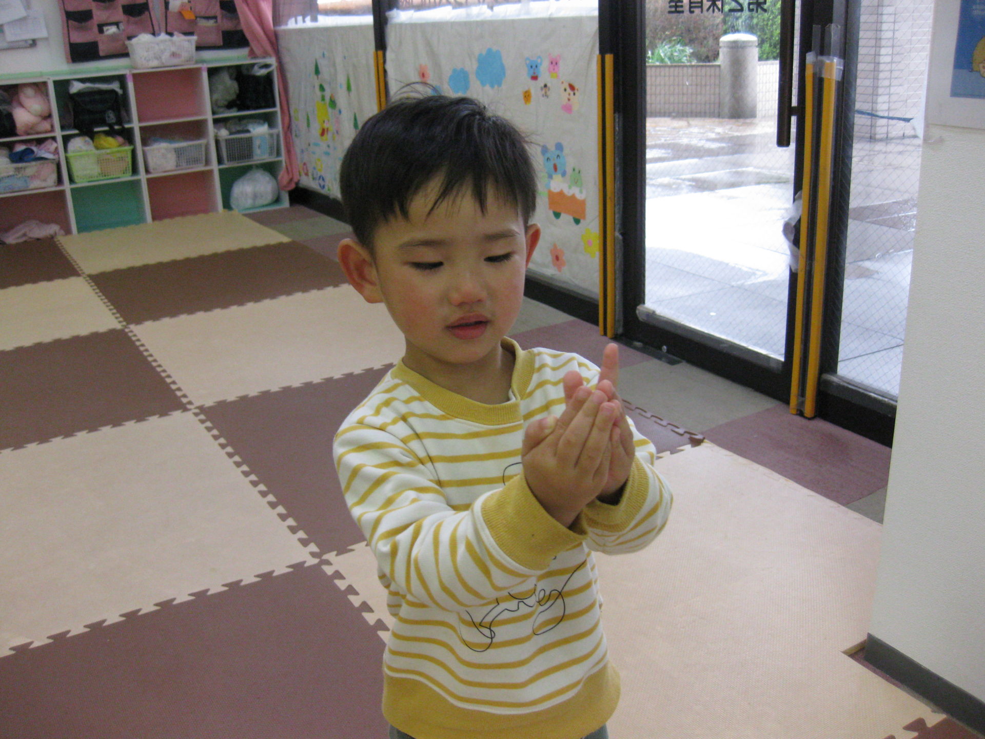 昨日に続き雨降りの朝となりましたが、元気にお友だちが登園して来てくれて