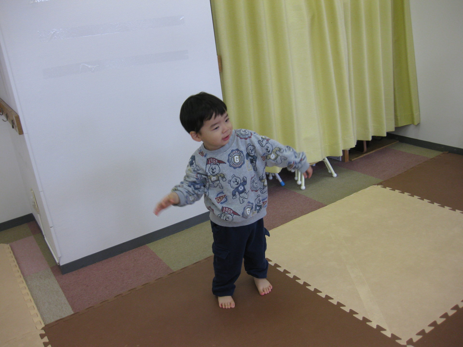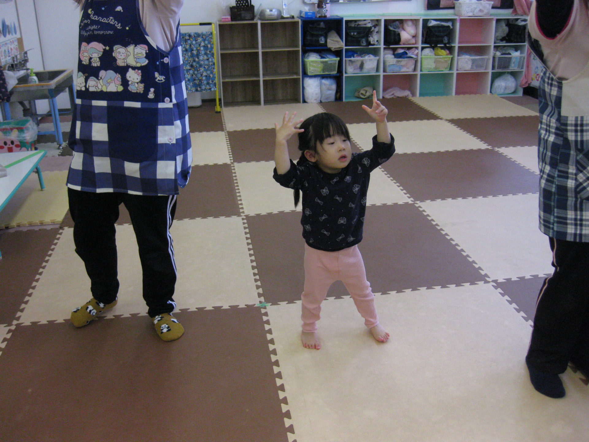 お歌に合わせて体を動かして楽しそうですね(^^♪