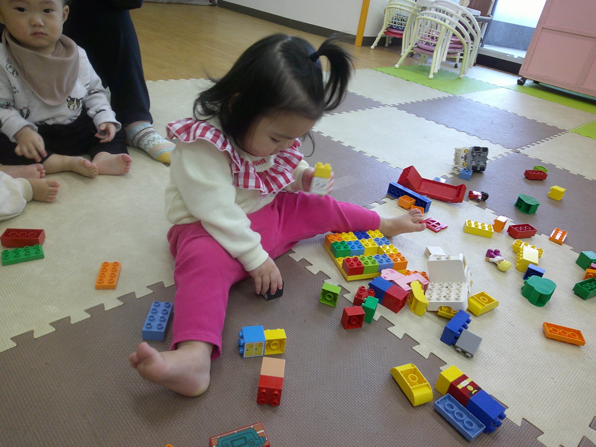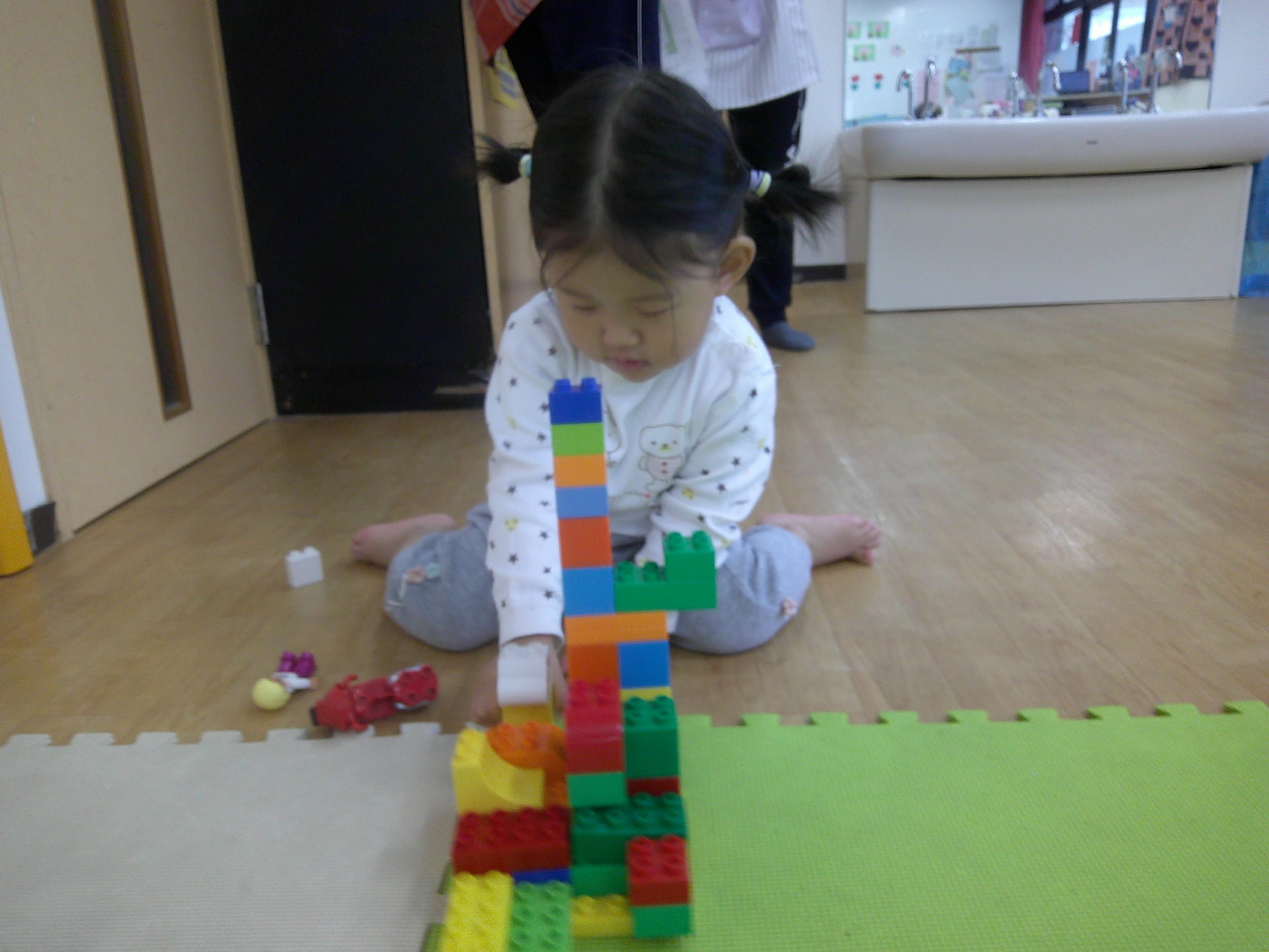 集中してブロックを組み立てます😊