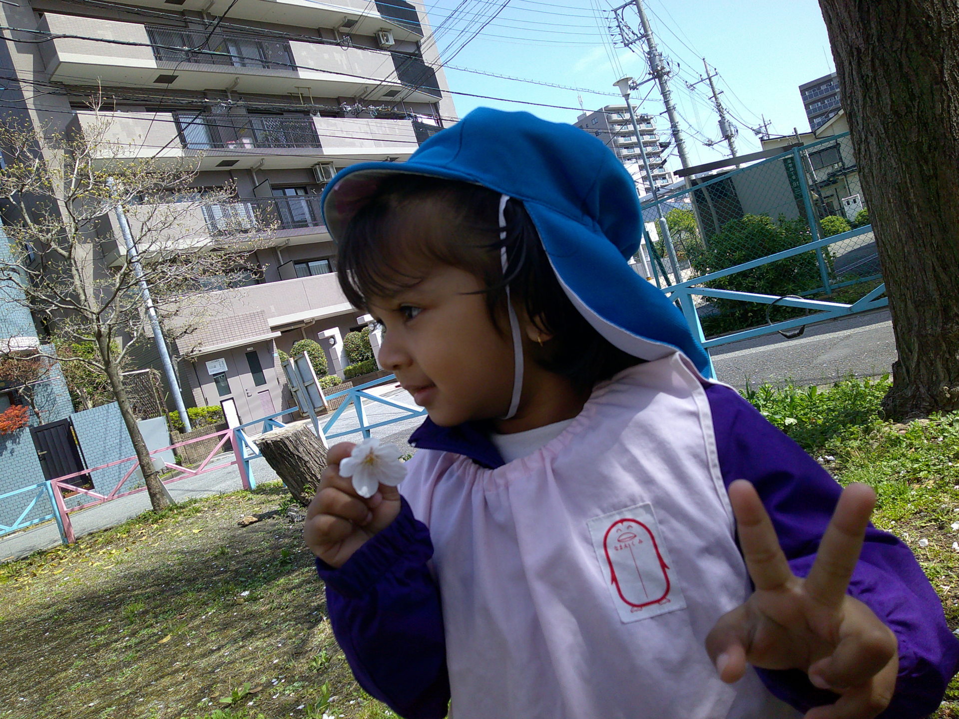 桜の花びらを拾うとニコニコと嬉しそうにしていました😊🌸