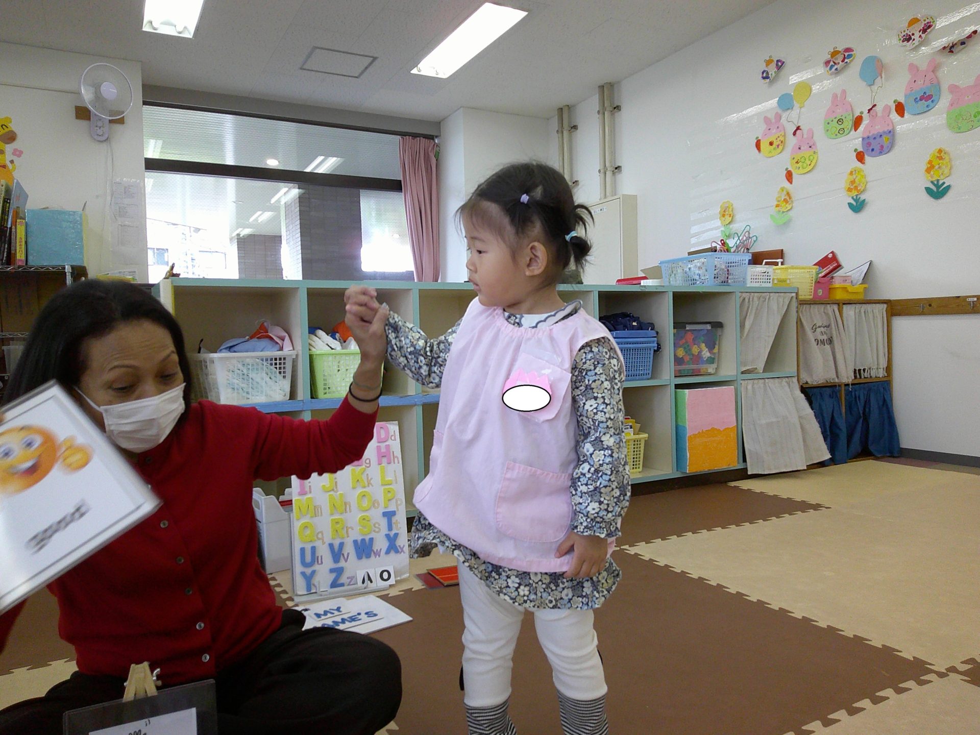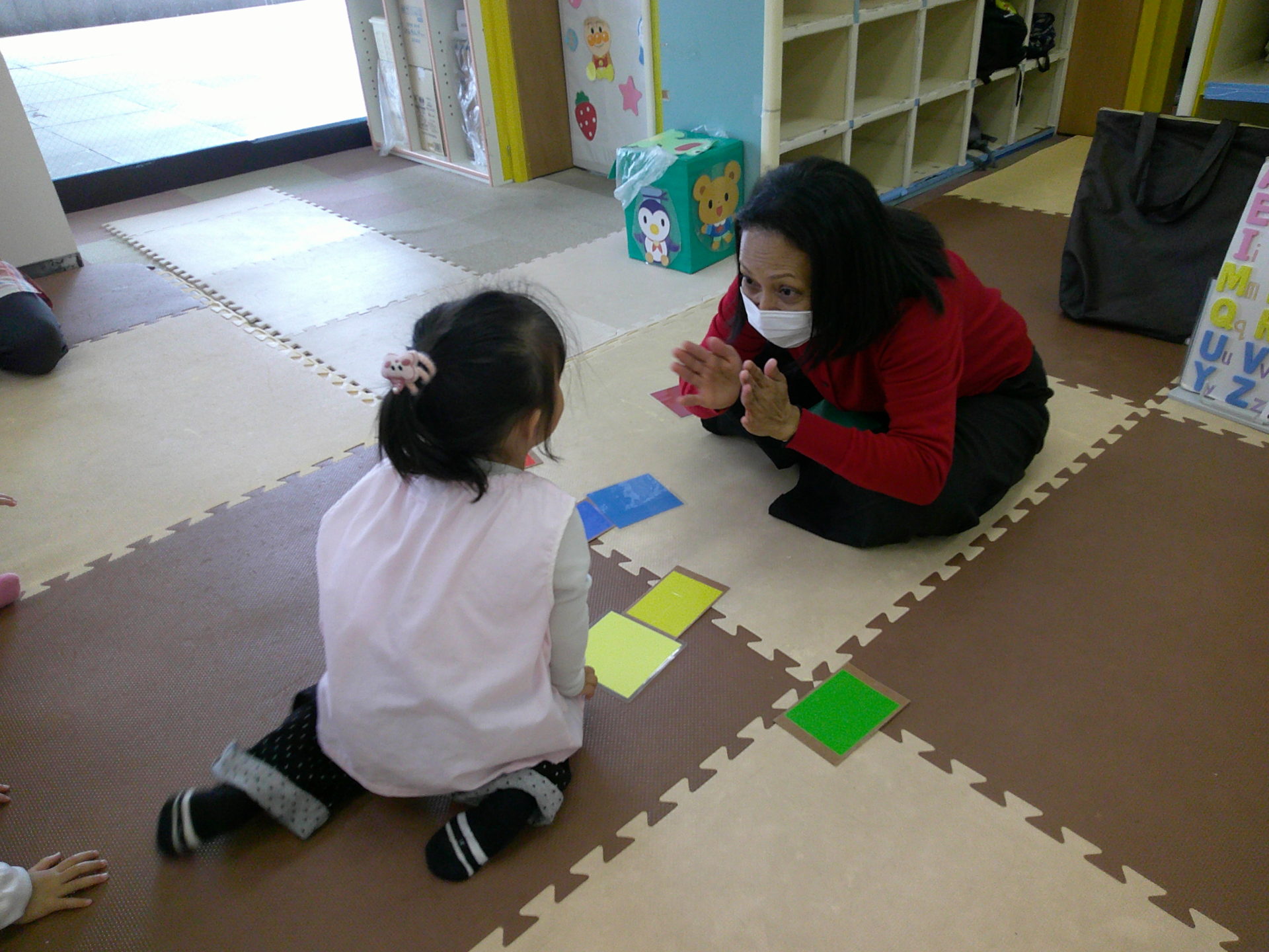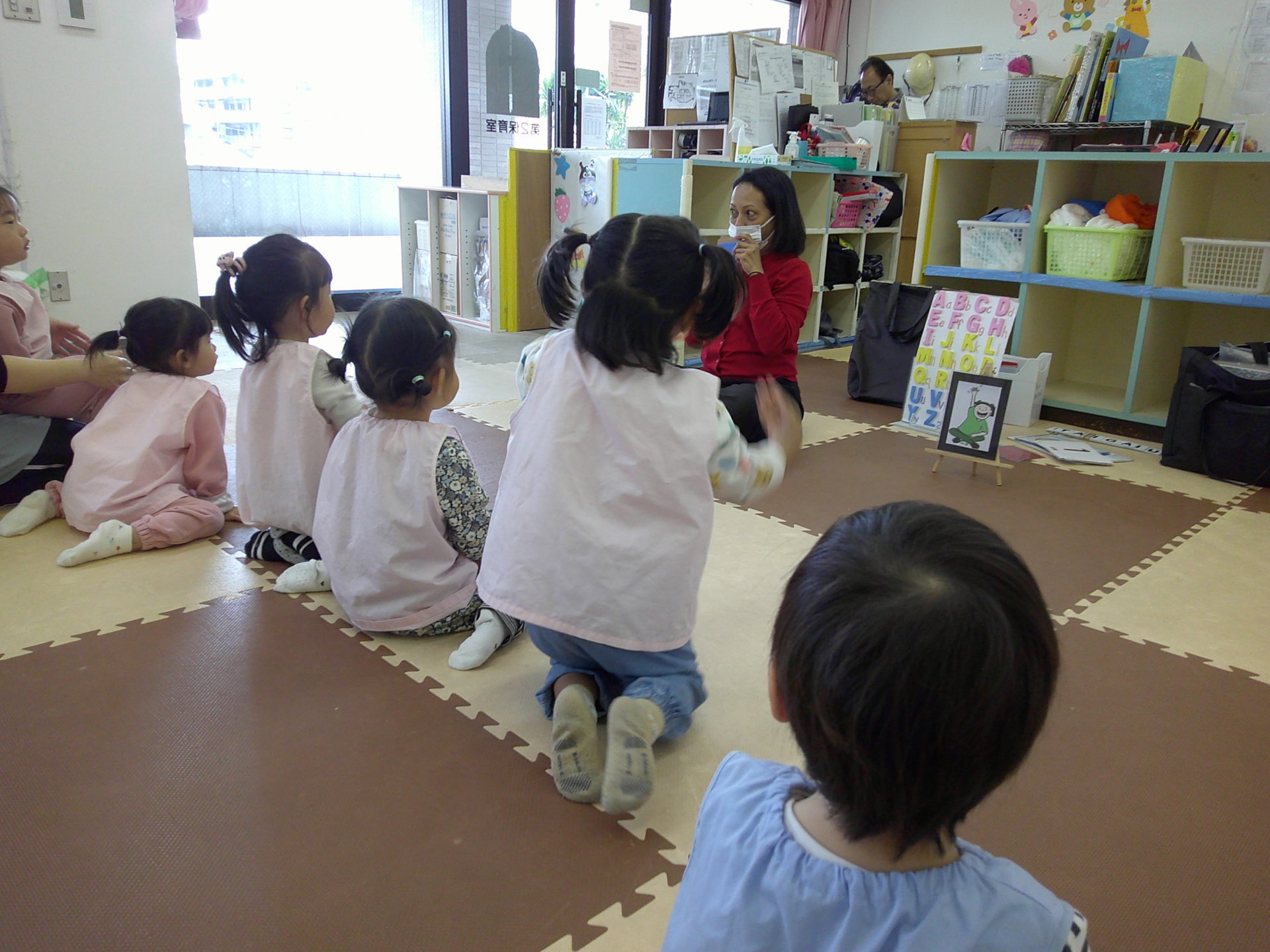 今日は木曜日ということで、こあら組さんは、初めての英語教室がありました。