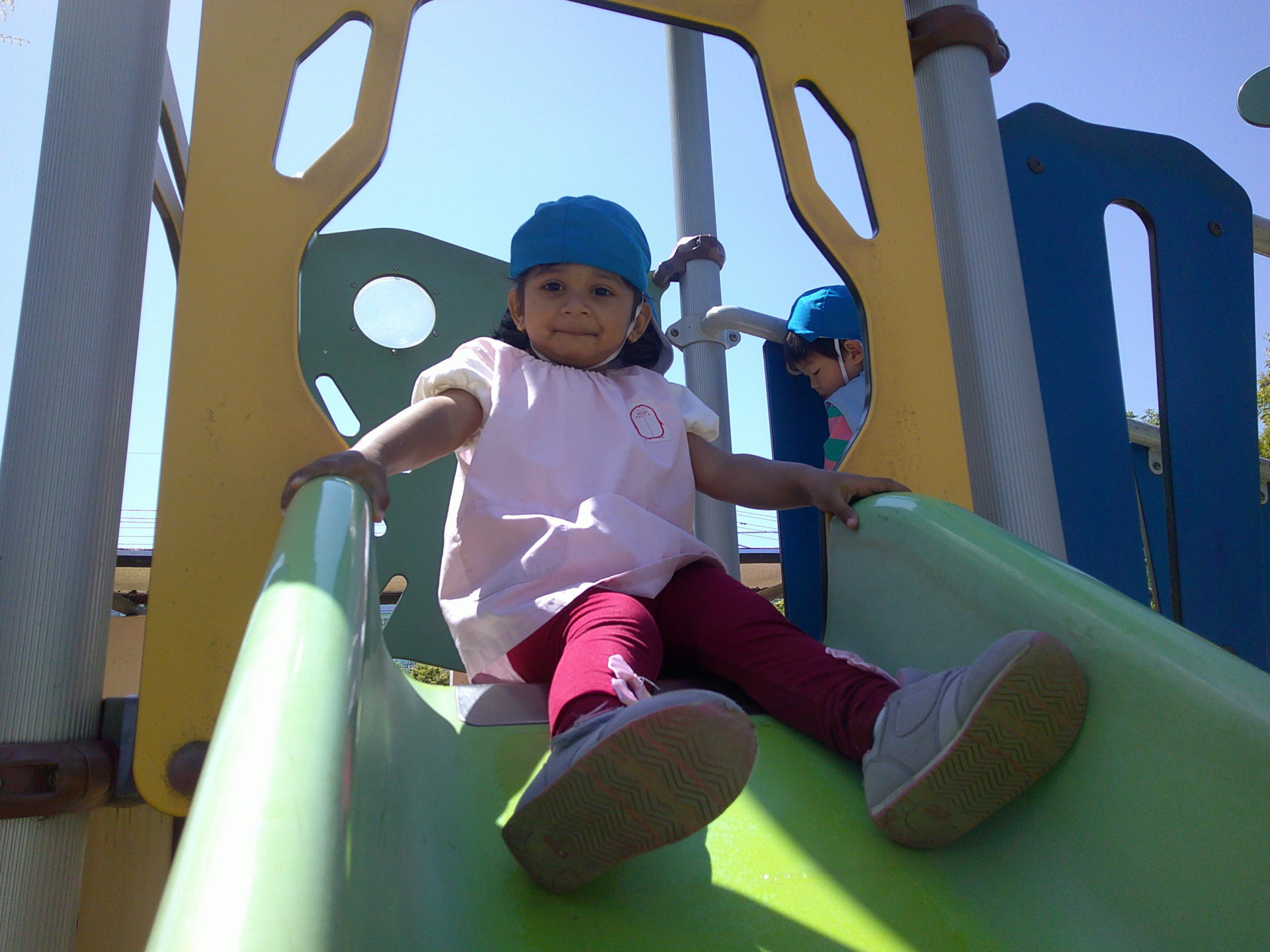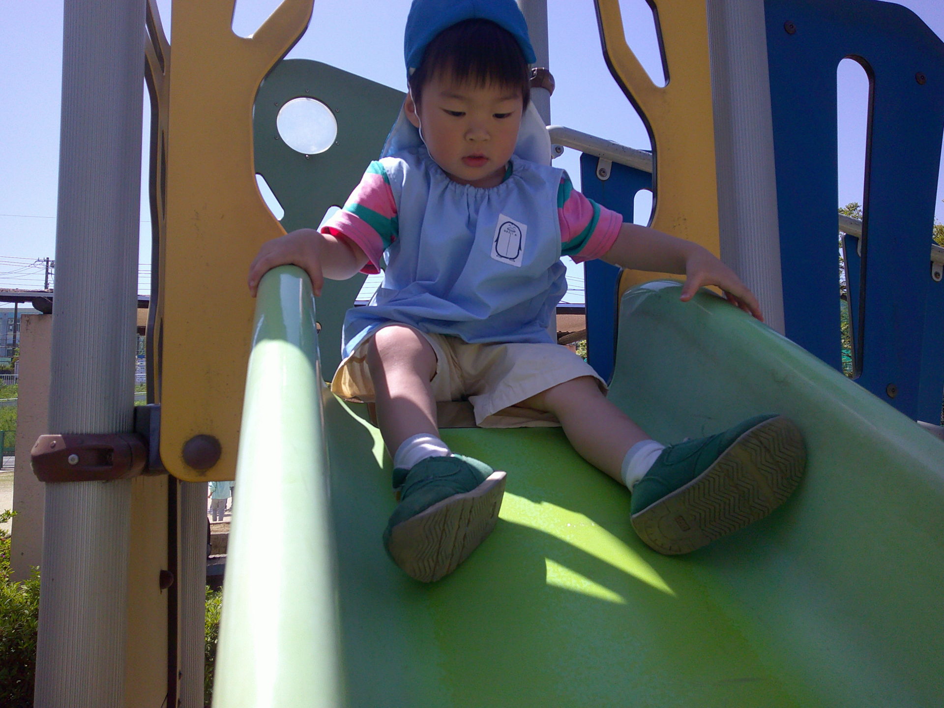 永瀬公園では大きめのすべり台に挑戦したのですが、