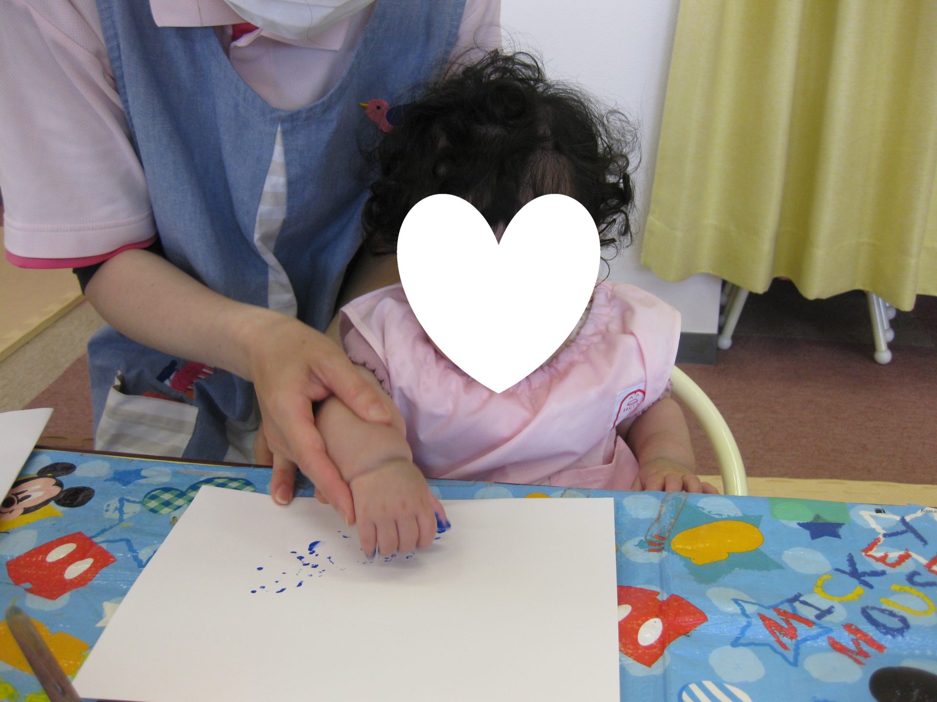 指に絵の具をつけると、不思議そうなお顔で自分の指先を見つめていました👀💕