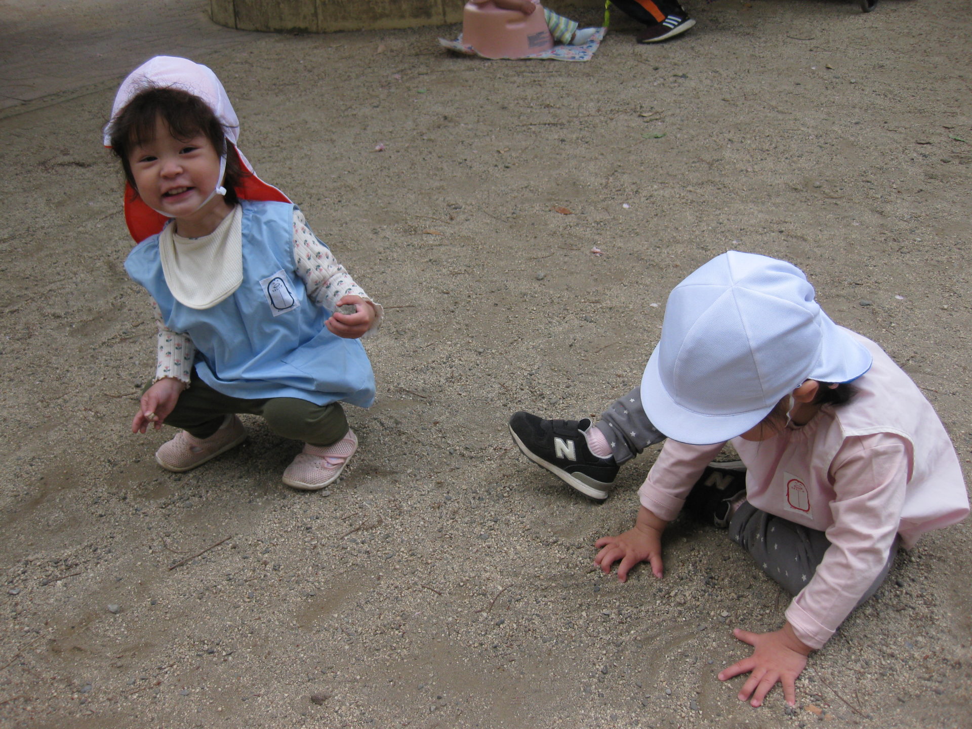 大好きなお砂遊びや桜の花びらを見つけて沢山遊びました⭐