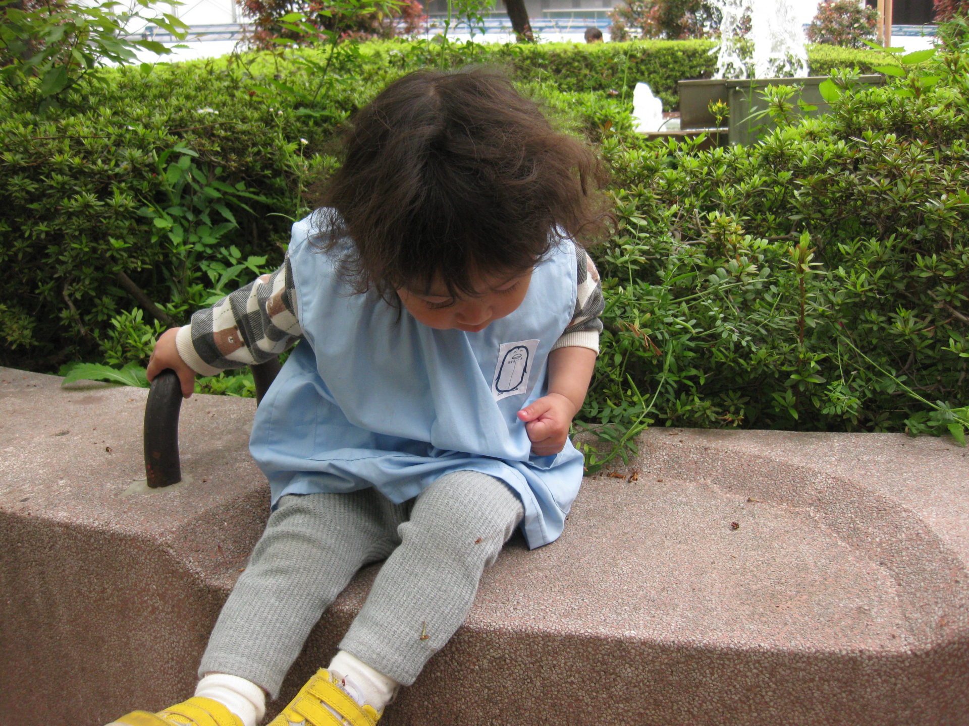 先生がダンゴ虫を見つけ、駆け寄っていきました👣
