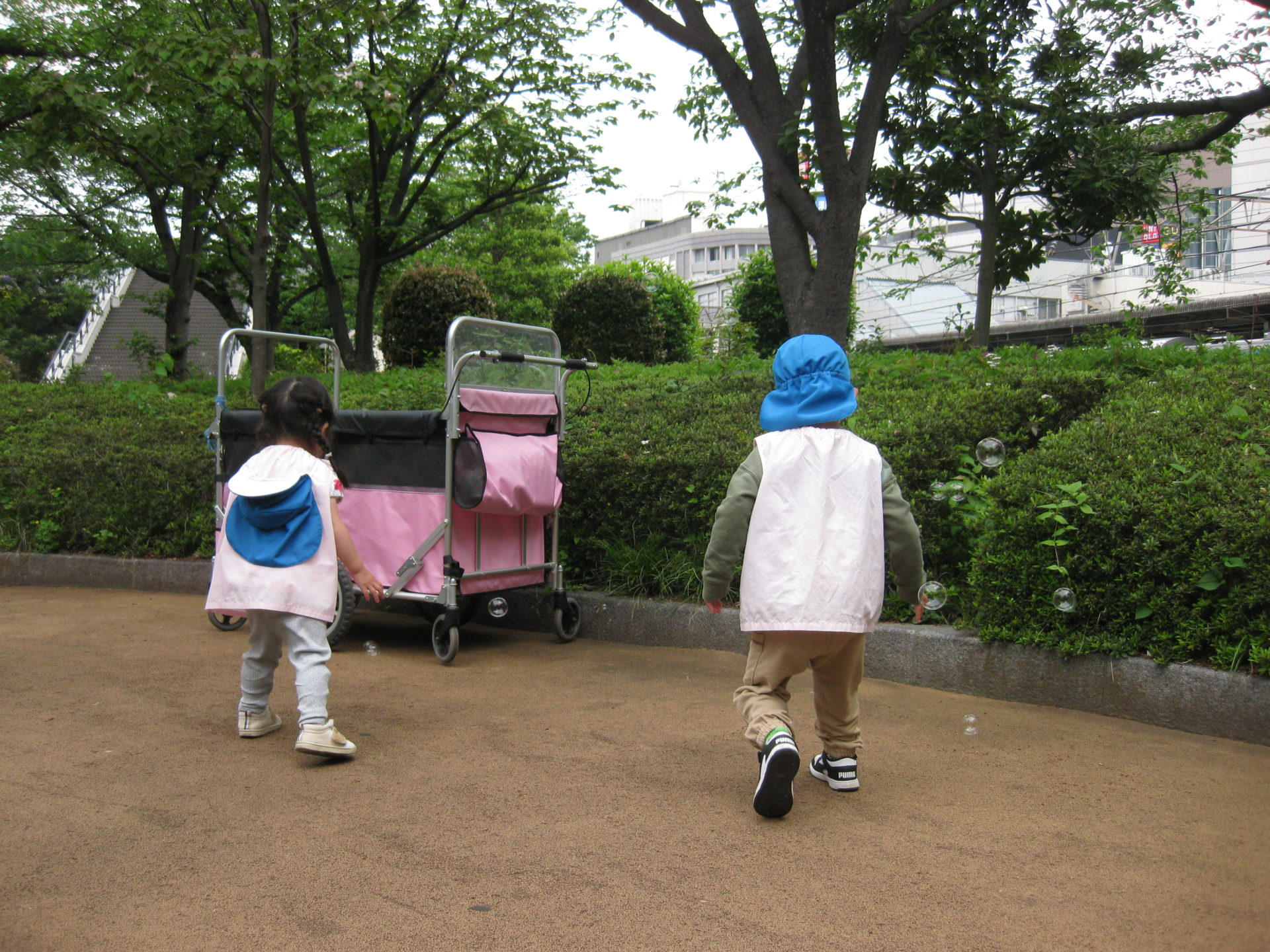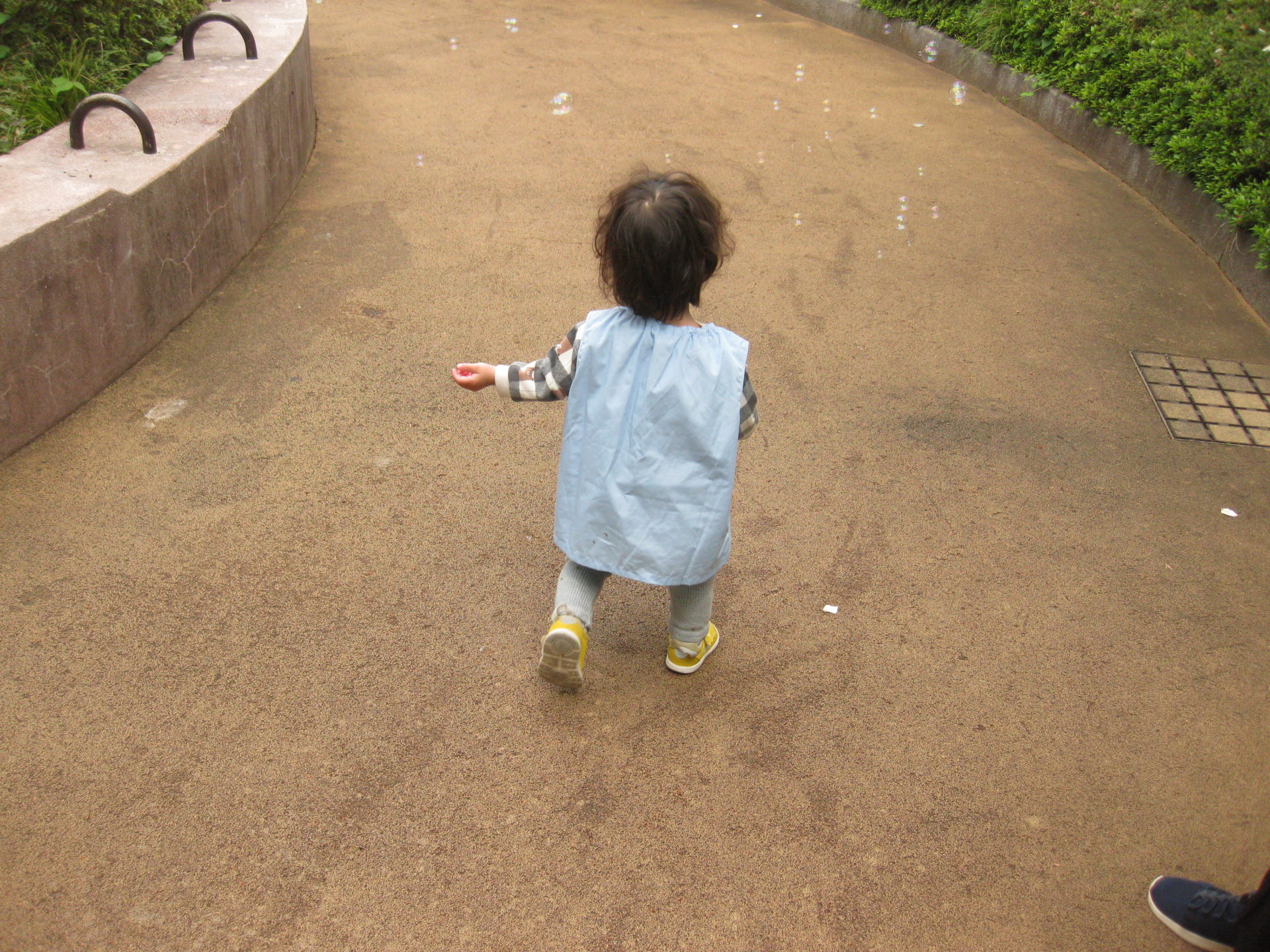 みんな風に吹かれるシャボン玉を必死に追いかけていました😄