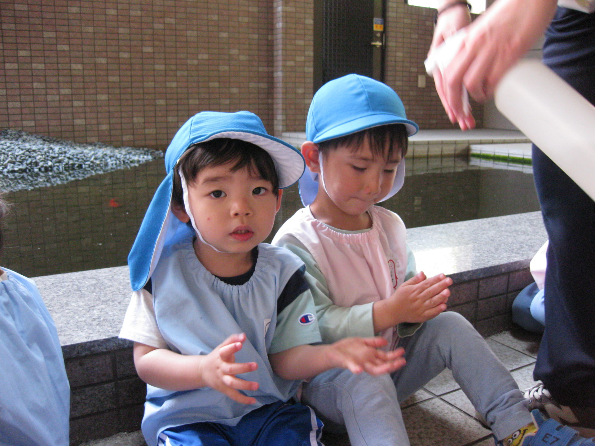 暑い中歩いてきたので麦茶を飲んで保育園に戻りました!