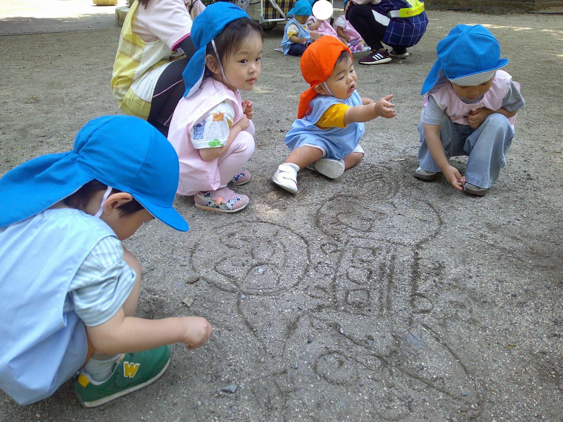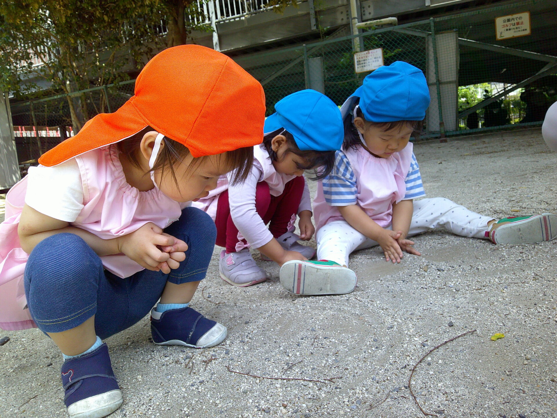 ひよこ組さんも夢中でお砂を触っていました!体が柔らかいですね😲