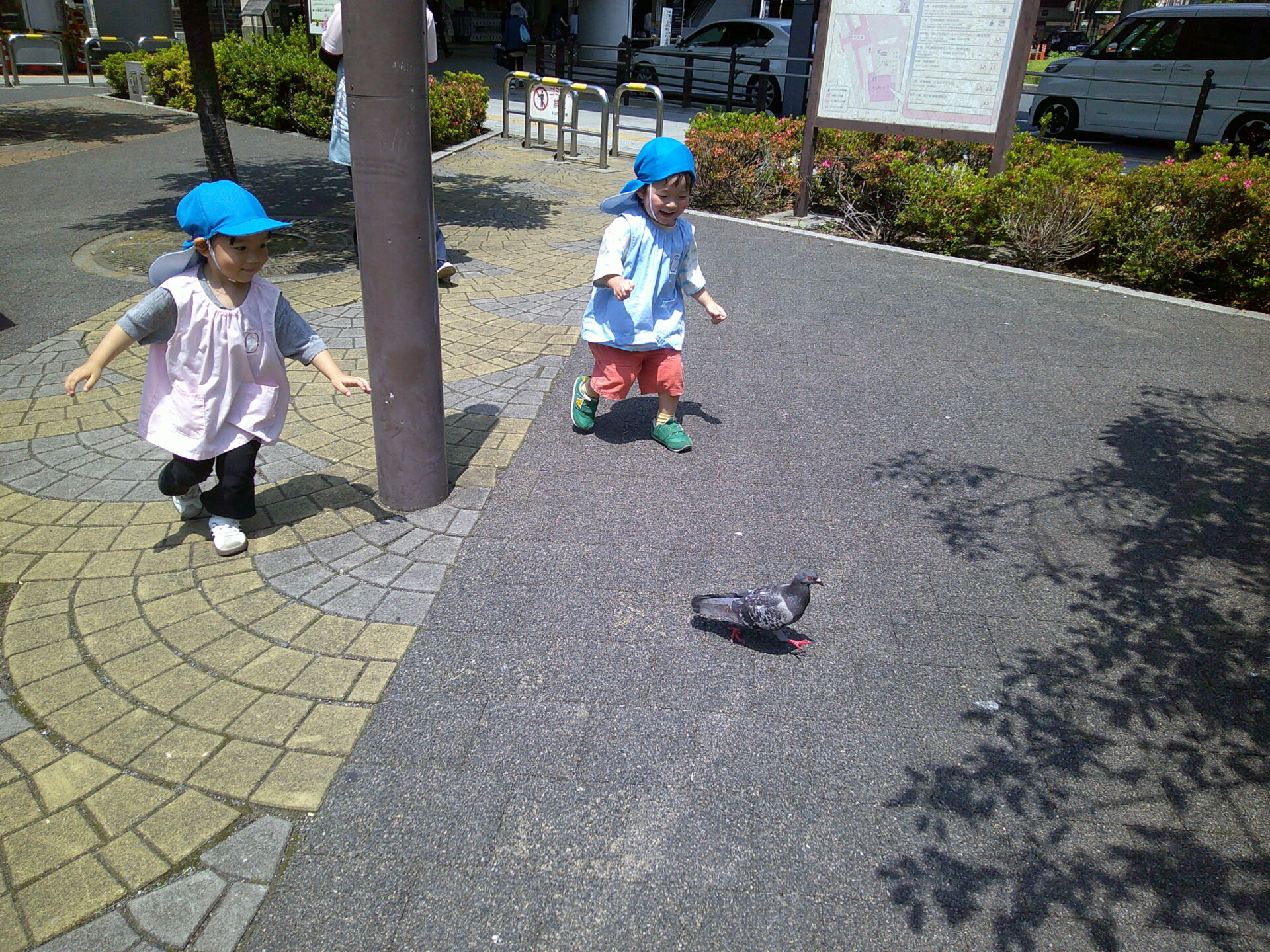 足を延ばして駅前広場へお散歩に行きました!少しずつお話も上手になってきたお友達も増えてきて、歩きながらお話に花が咲いていましたよ🌸