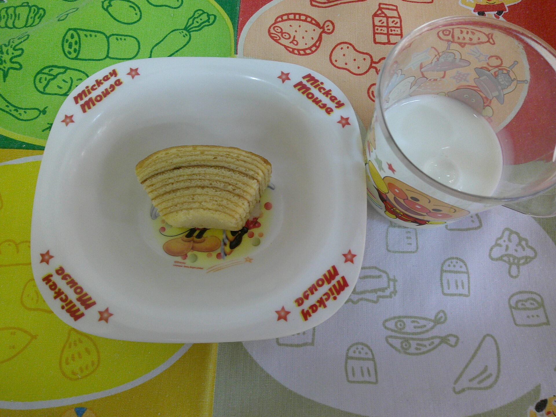 おやつのバームクーヘンをおいしそうに頬張っていました✨