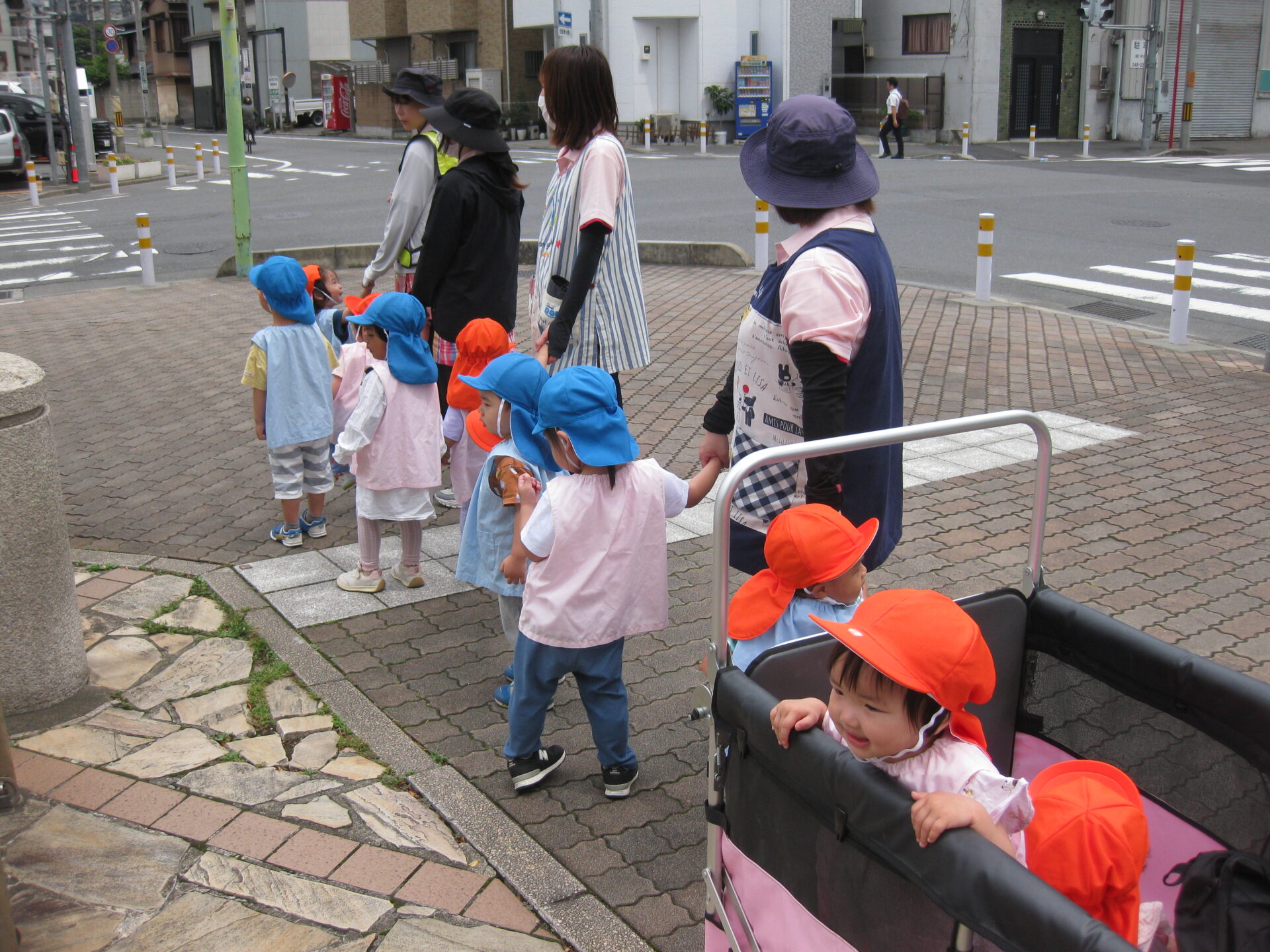 今日はひよこ組、うさぎ組、こあら組みんなで少し遠くの本町公園までお散歩に出かけることができました!長い列をつくってよいしょよいしょ…上手に歩いて行けましたよ♩カートに乗っているお友だちも、ニコニコ可愛い笑顔を見せてくれてご機嫌なご様子でした😊