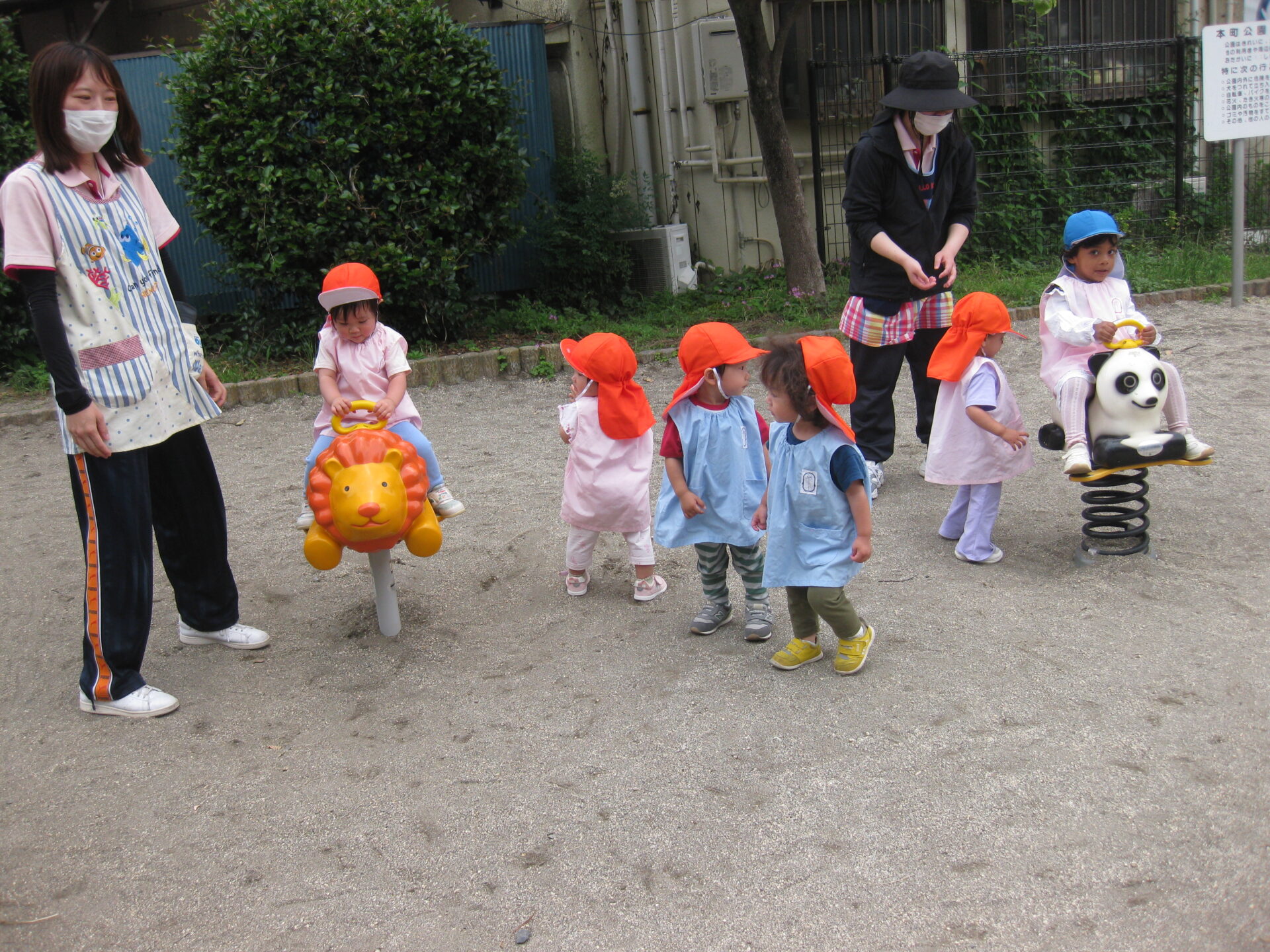 公園に着くとすでにたくさんのお友だちが遊んでいましたが、スプリング遊具の場所があいていました!順番こで仲良く楽しく遊ぶことができましたよ。