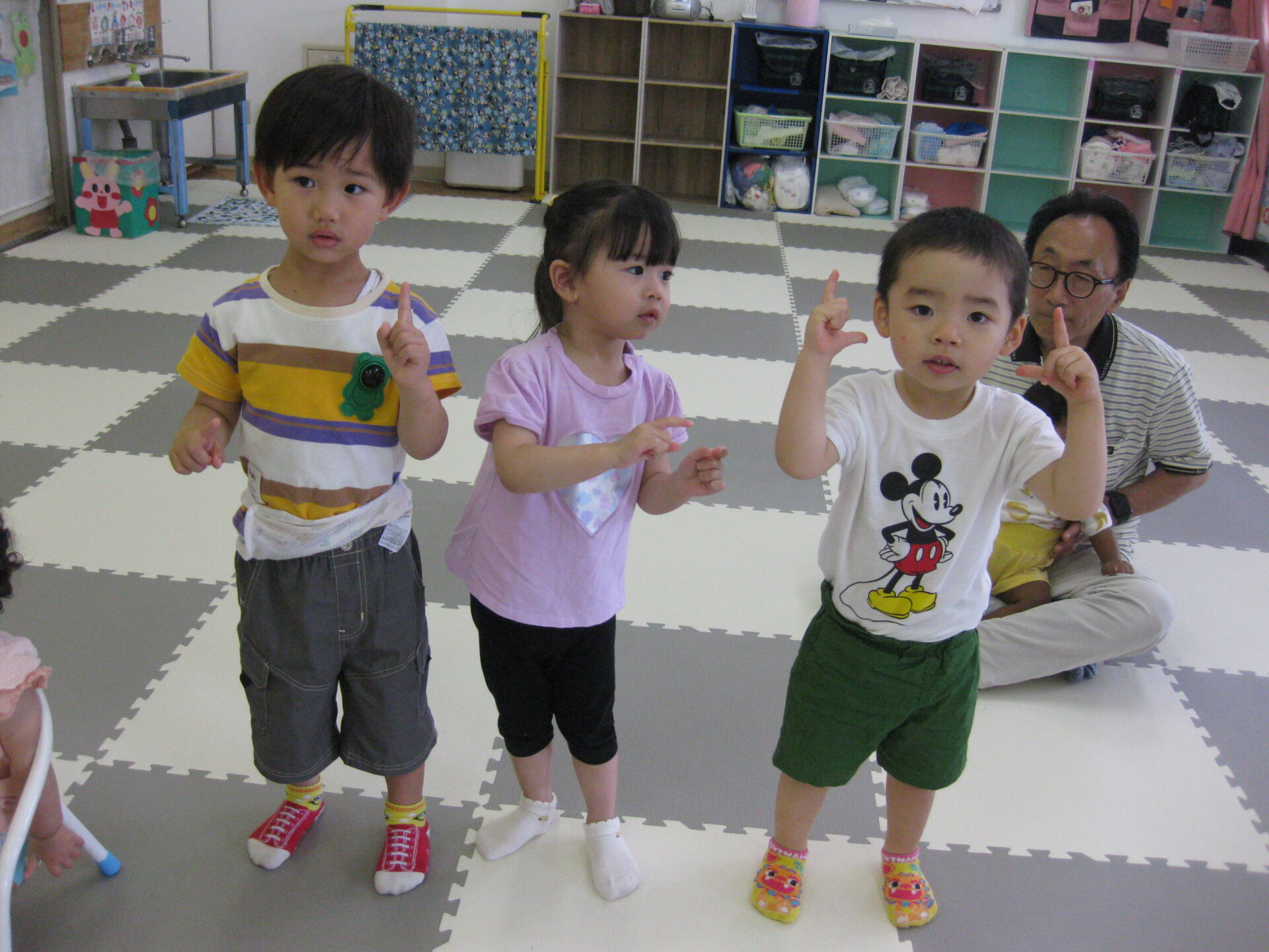 指を1にして、左右にコチコチと動かして歌う姿がとても可愛いです❤
