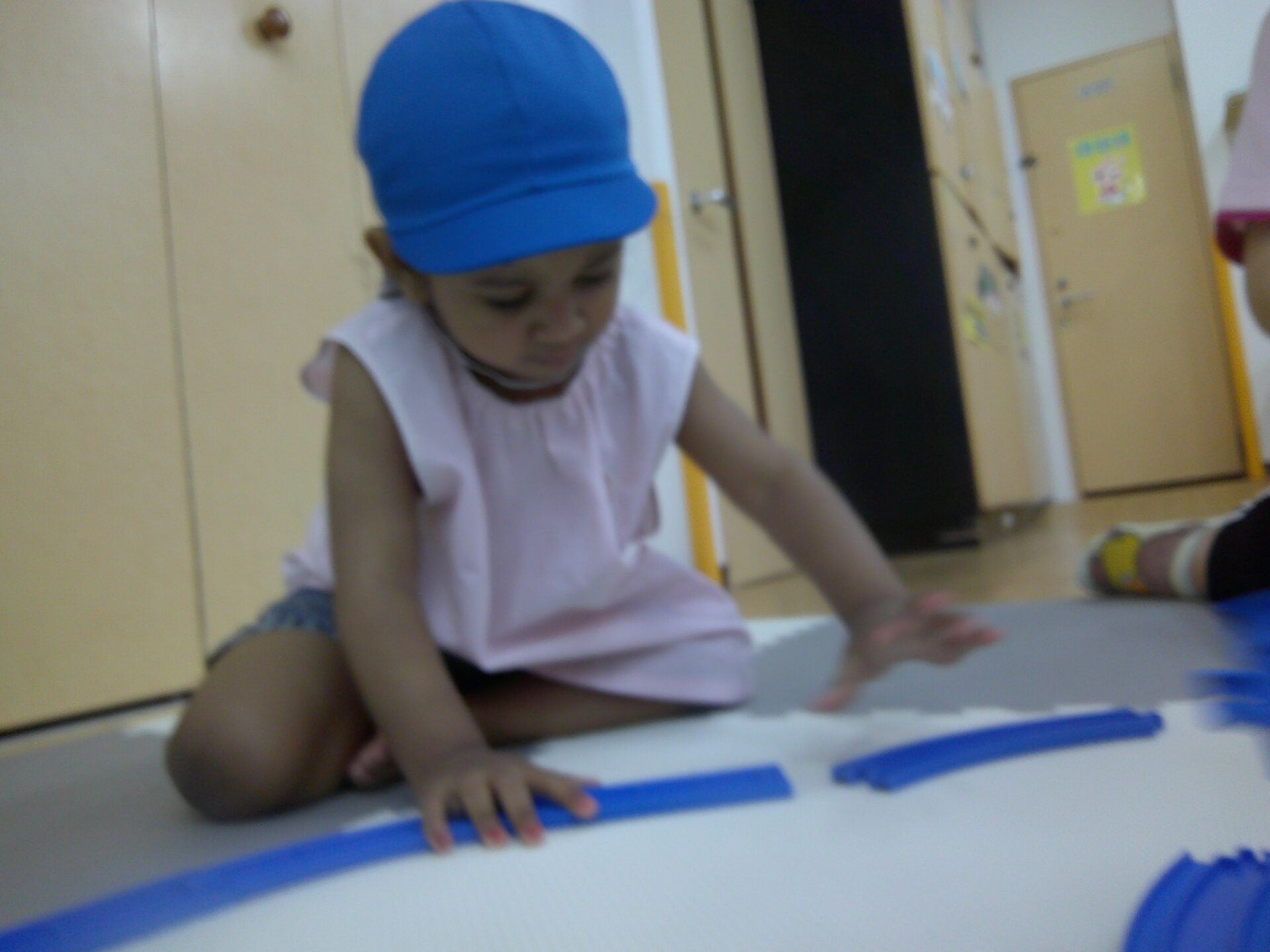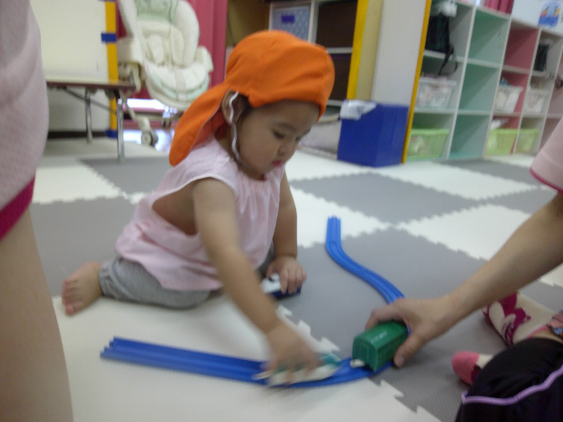 今日はお水遊びの前にプラレールで遊びました!