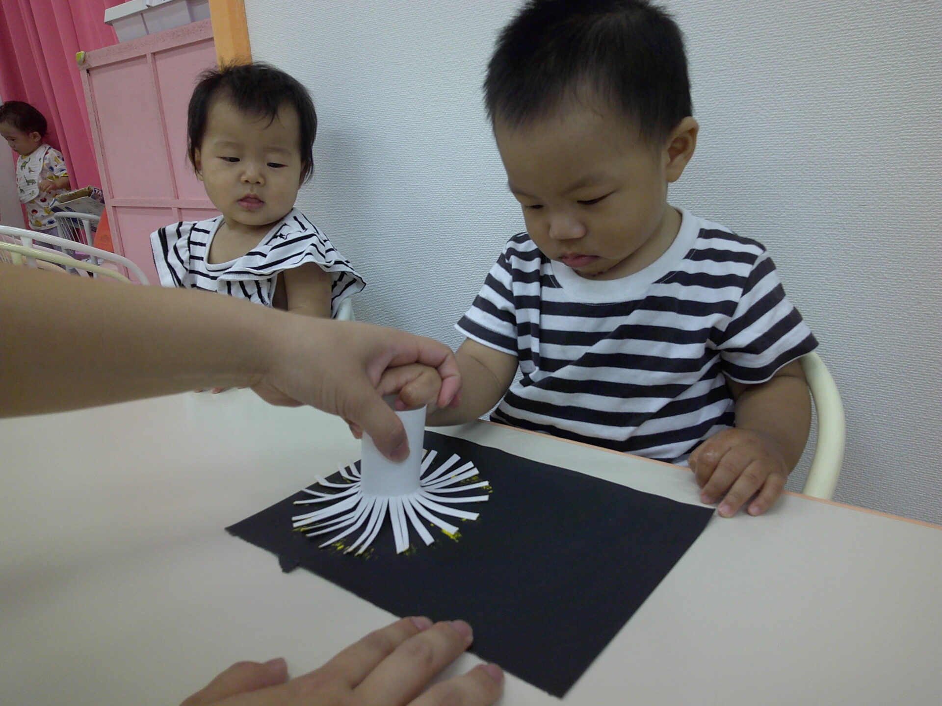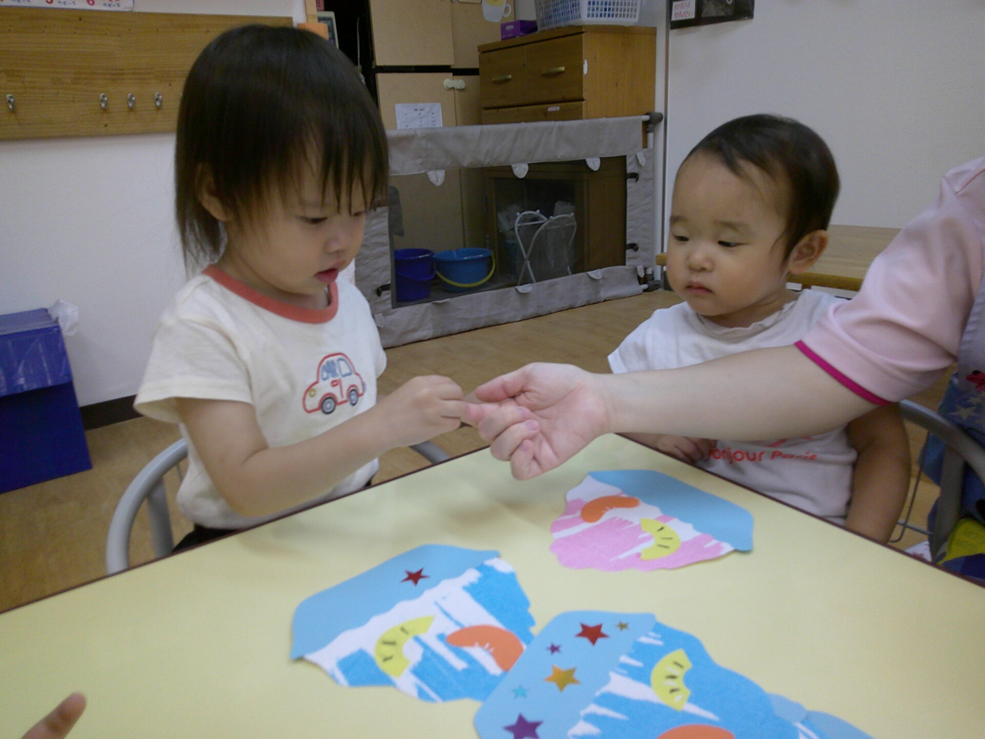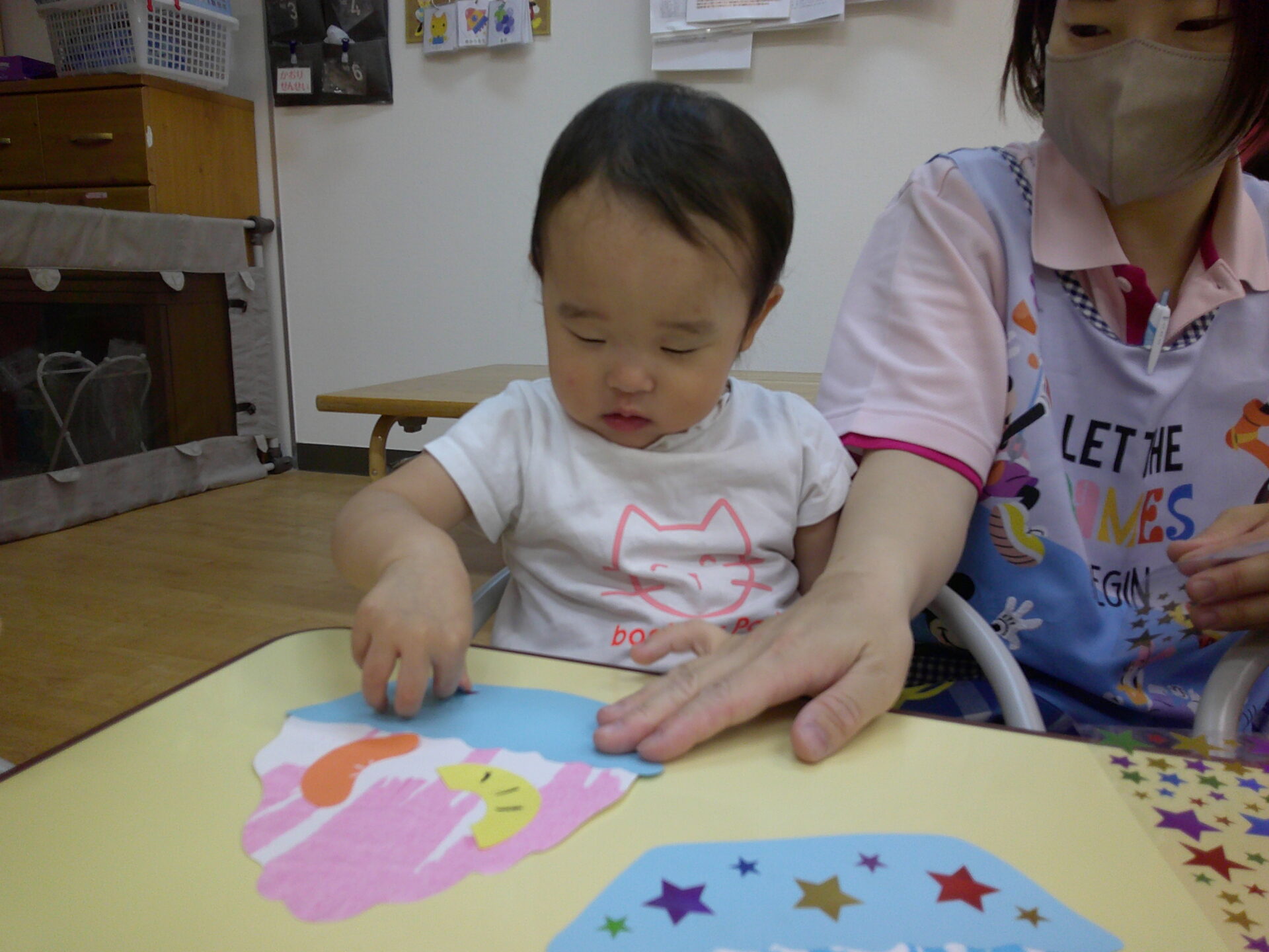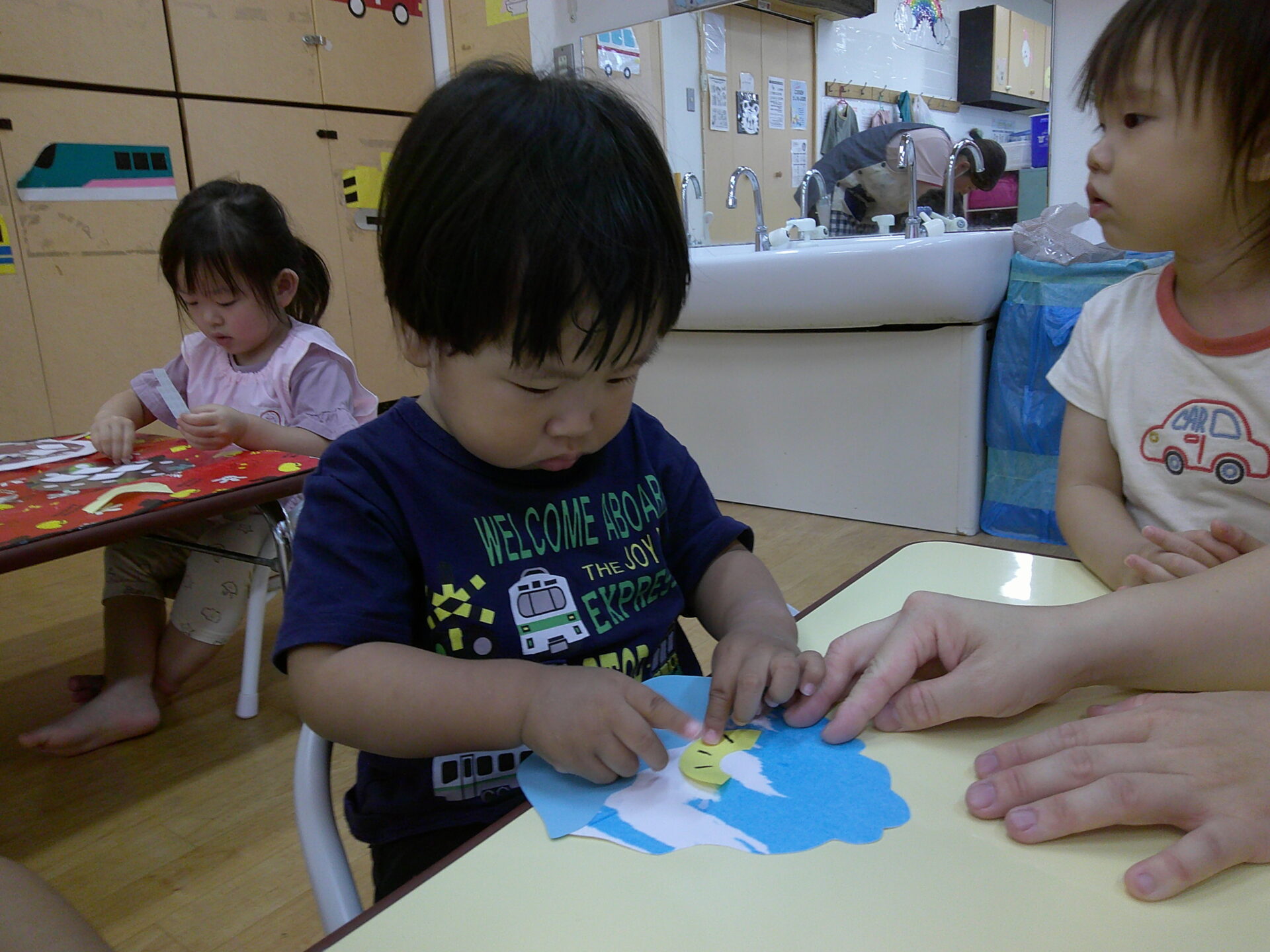 水遊びを楽しんだ後は、お部屋に戻って夏のお製作の続きをして過ごしました。