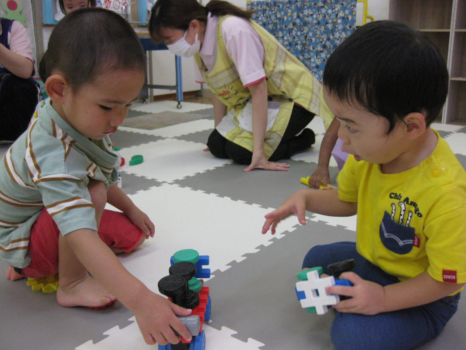 お茶も飲み終わり、少し休憩もできたあとは井形ブロックで遊びました。