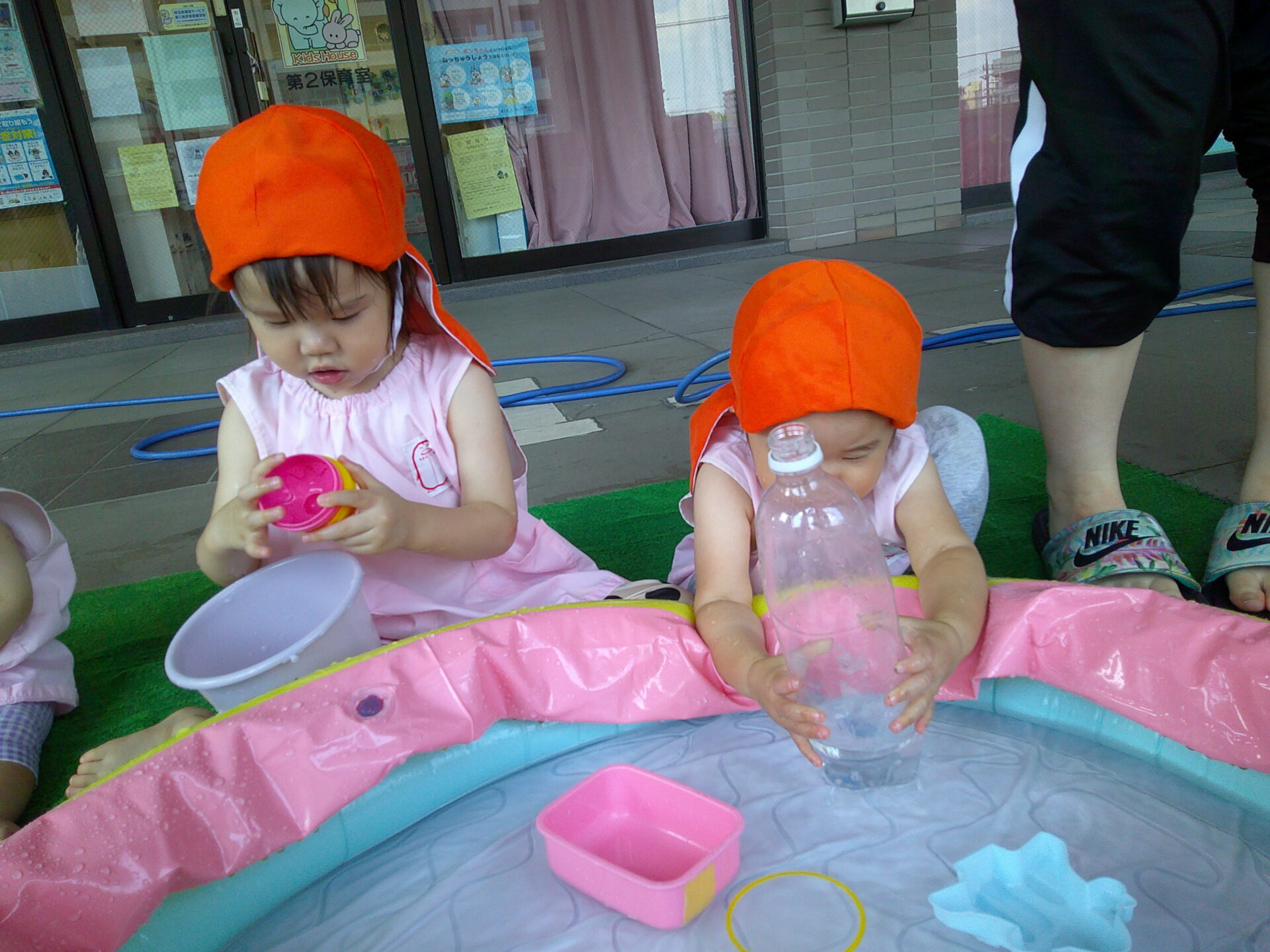 カップにお水をもらったり、おもちゃで遊びながら待っていました。