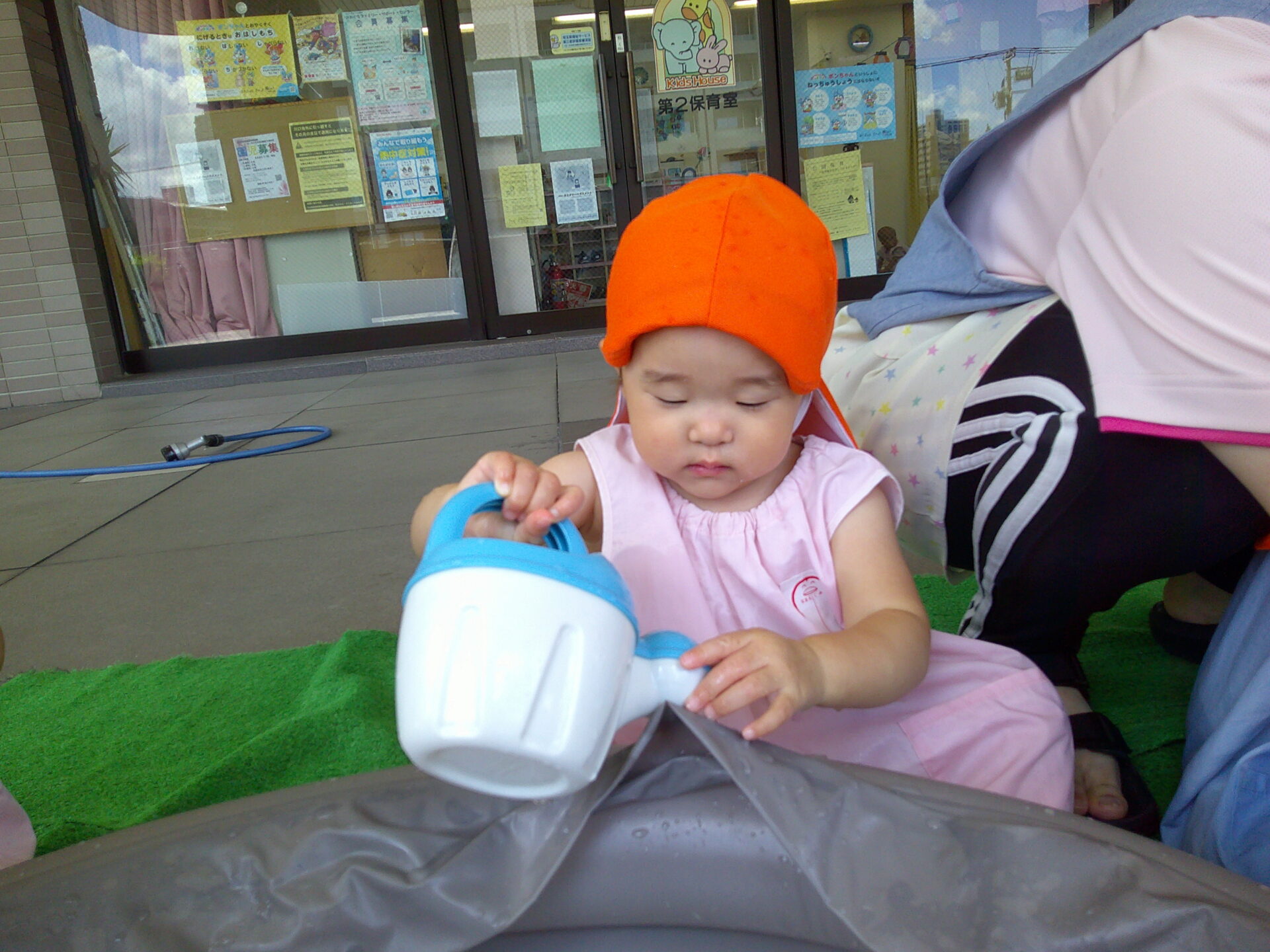 お楽しみ会後は、第2保育室の前で少しだけ水遊びをしました。