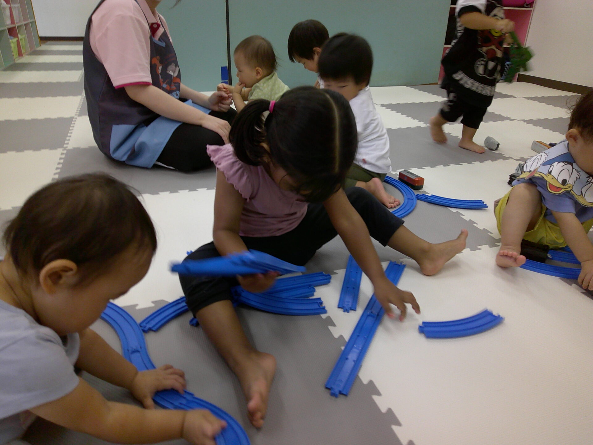 珍しい電車つながりで、お部屋に戻ってからはプラレールで遊びました。