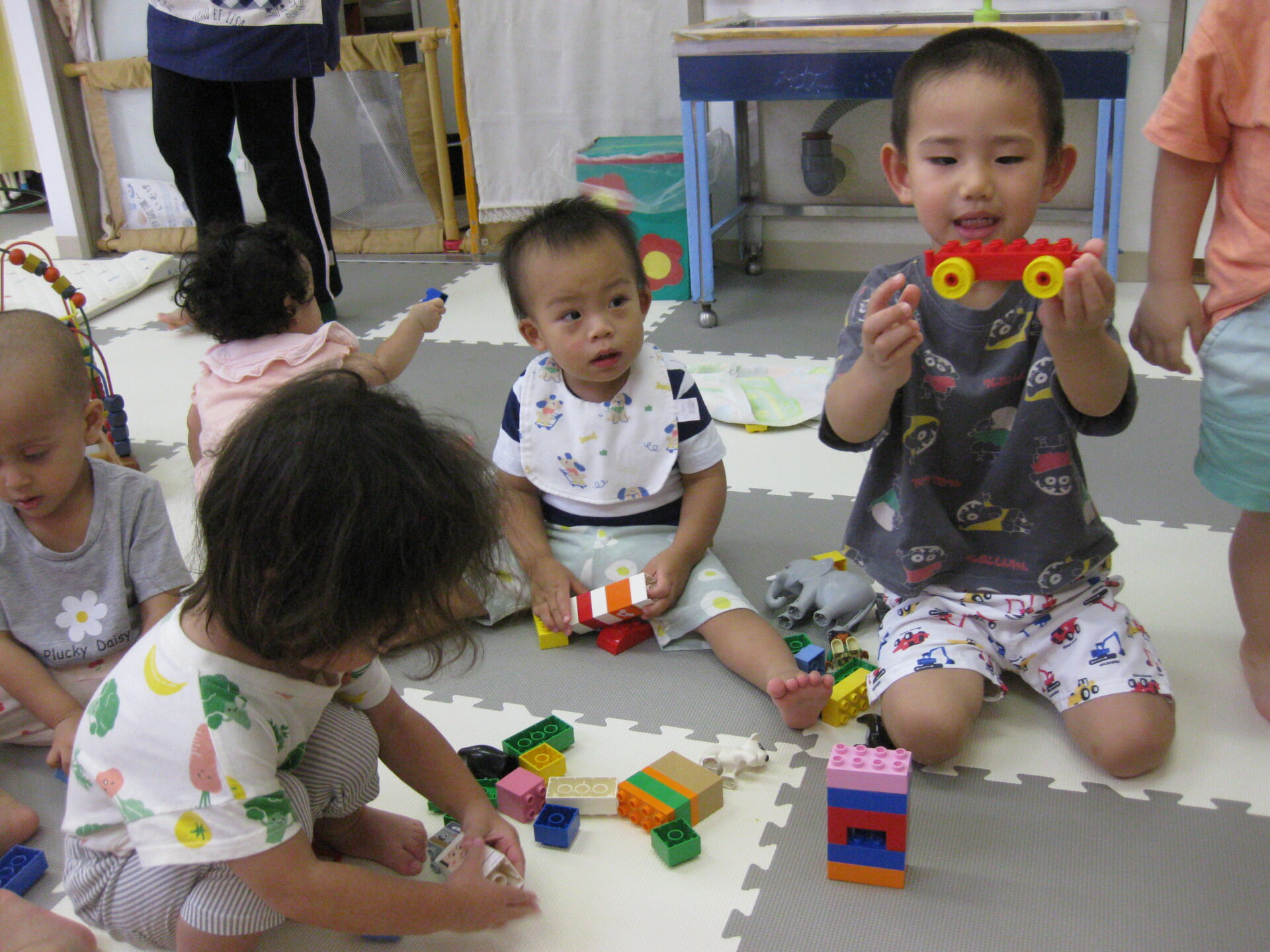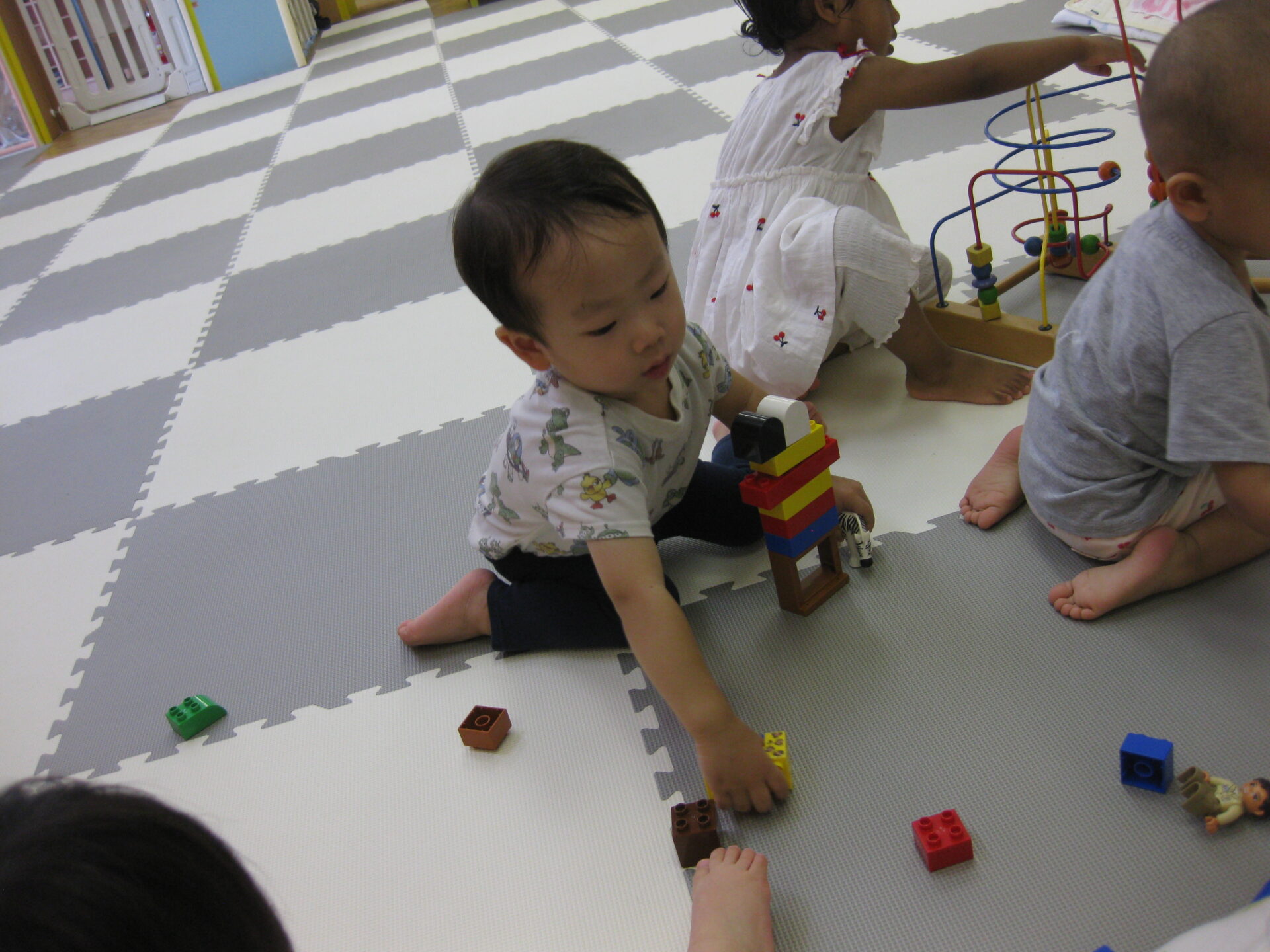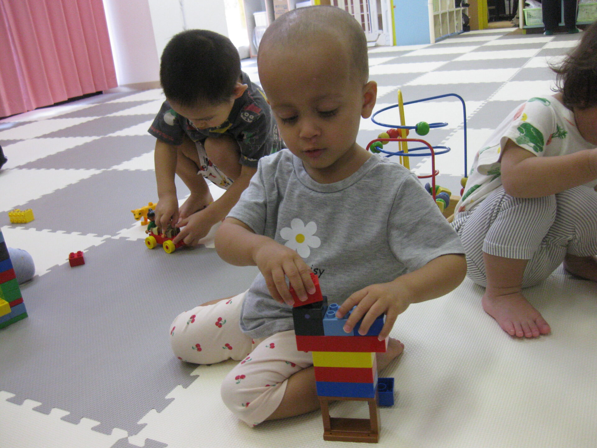 お水遊びが終わったお友だちも、そのあとお部屋でブロック遊びをしました(^^♪
