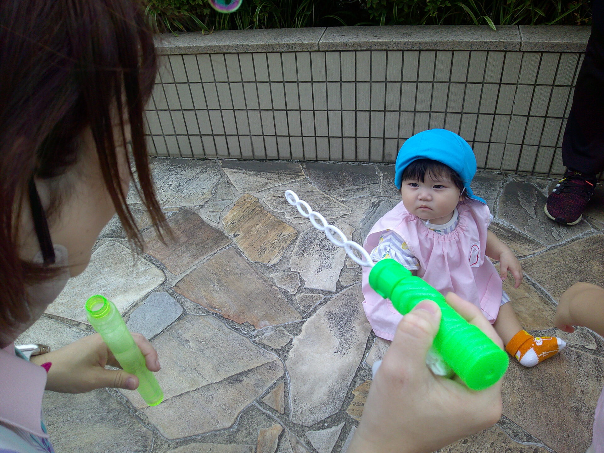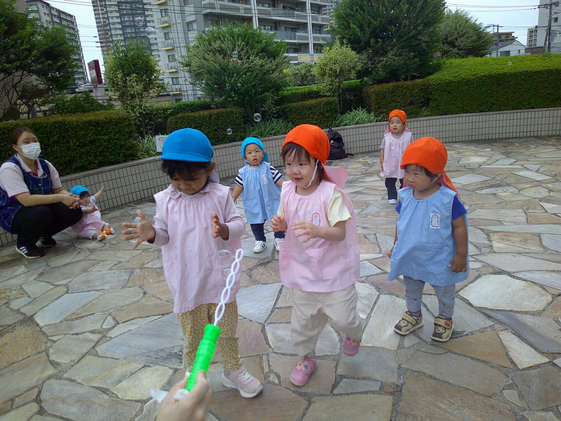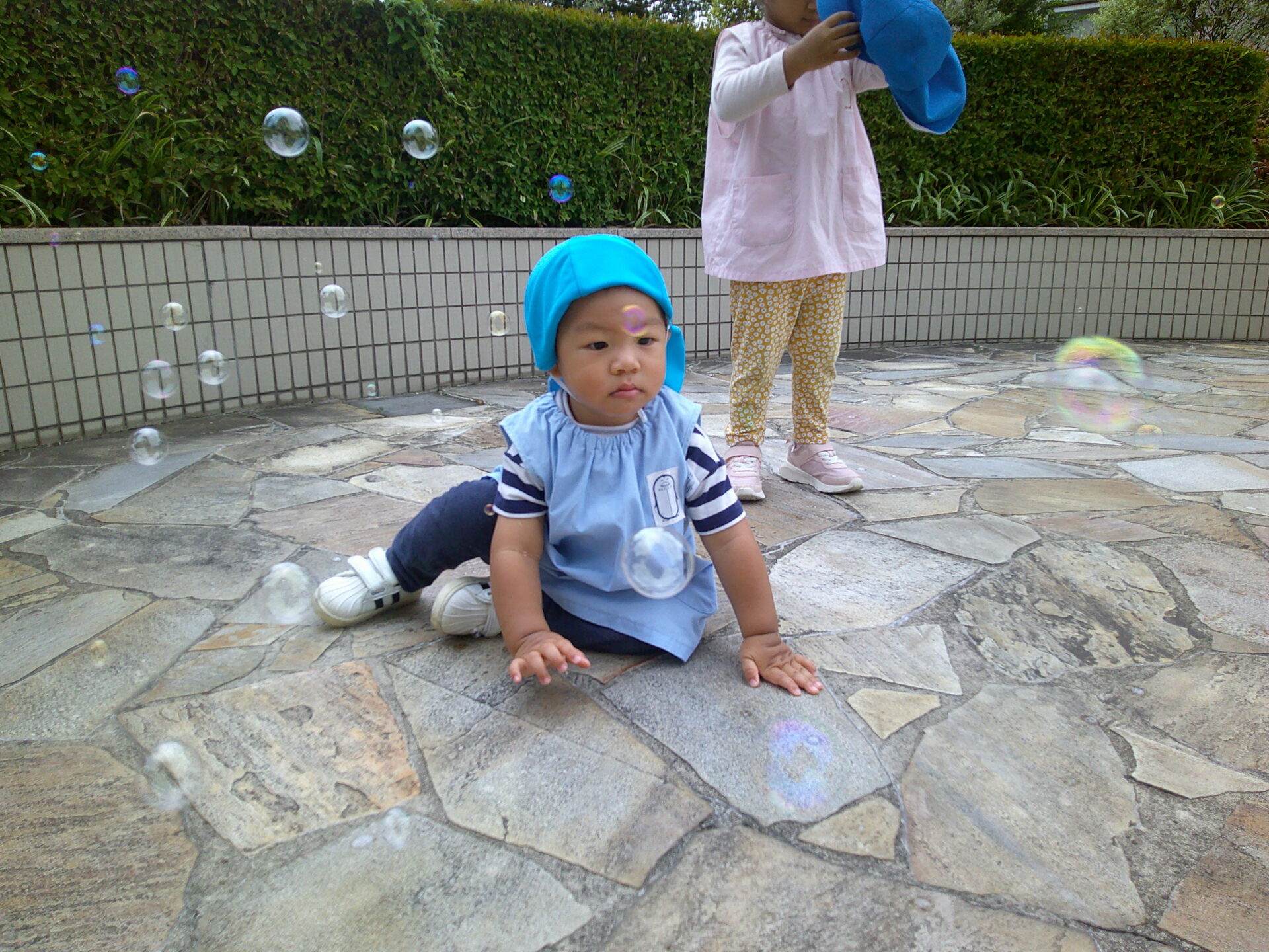 みんなでたくさん走って追いかけたり、手でぱちん!と割ってみたりして楽しんでいました。