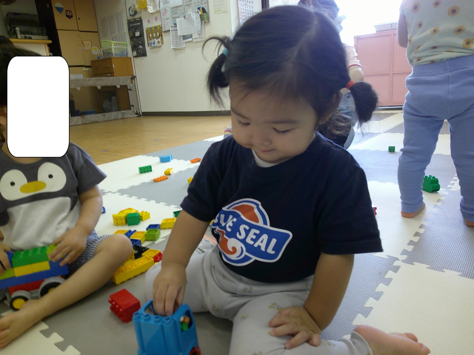 ひよこ組さんは自分の好きなブロックでニコニコ楽しそうに遊んでいましたよ😄