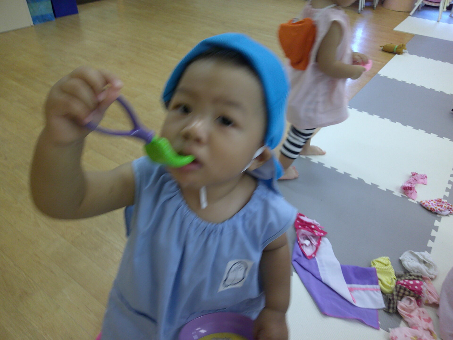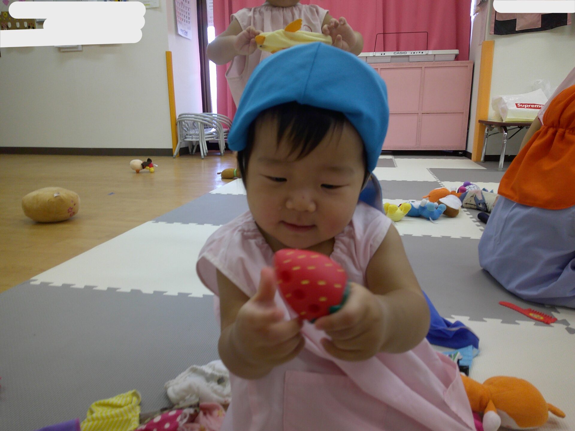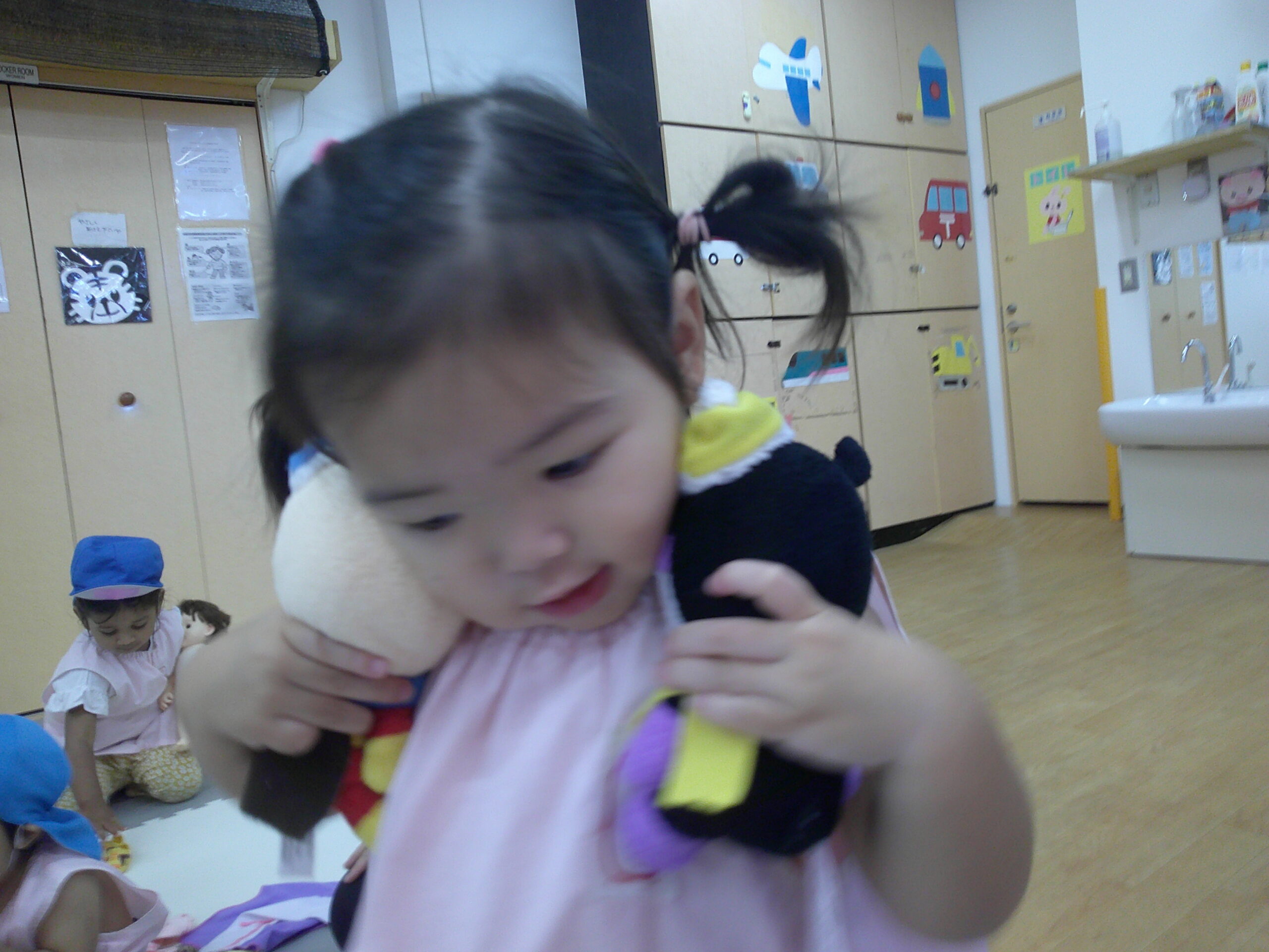 登園時は泣いてしまったけどすぐに泣き止みご機嫌で遊んでいるお友達と