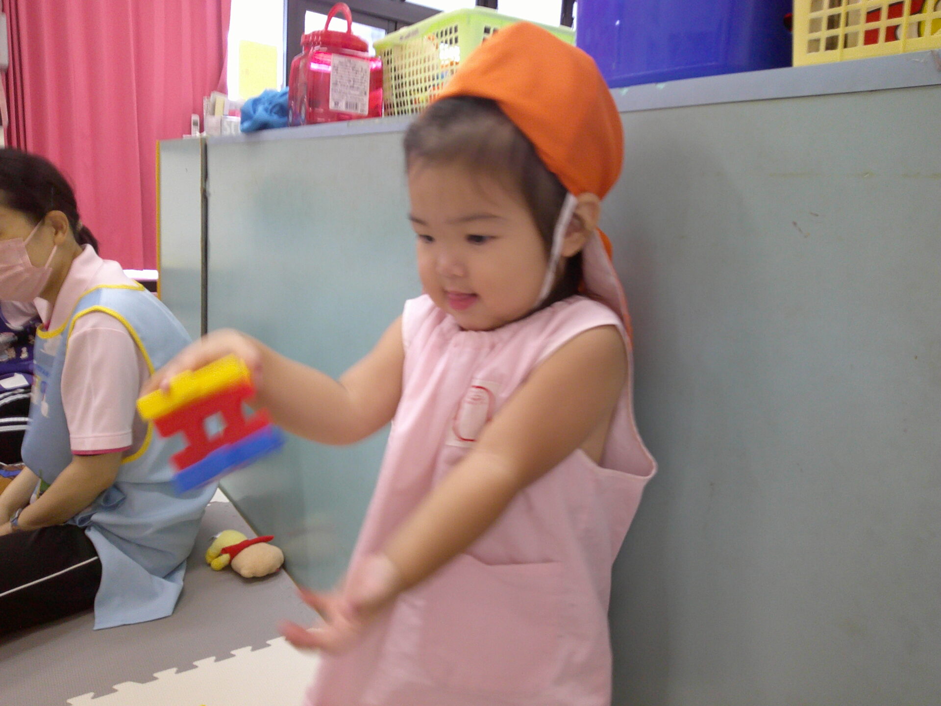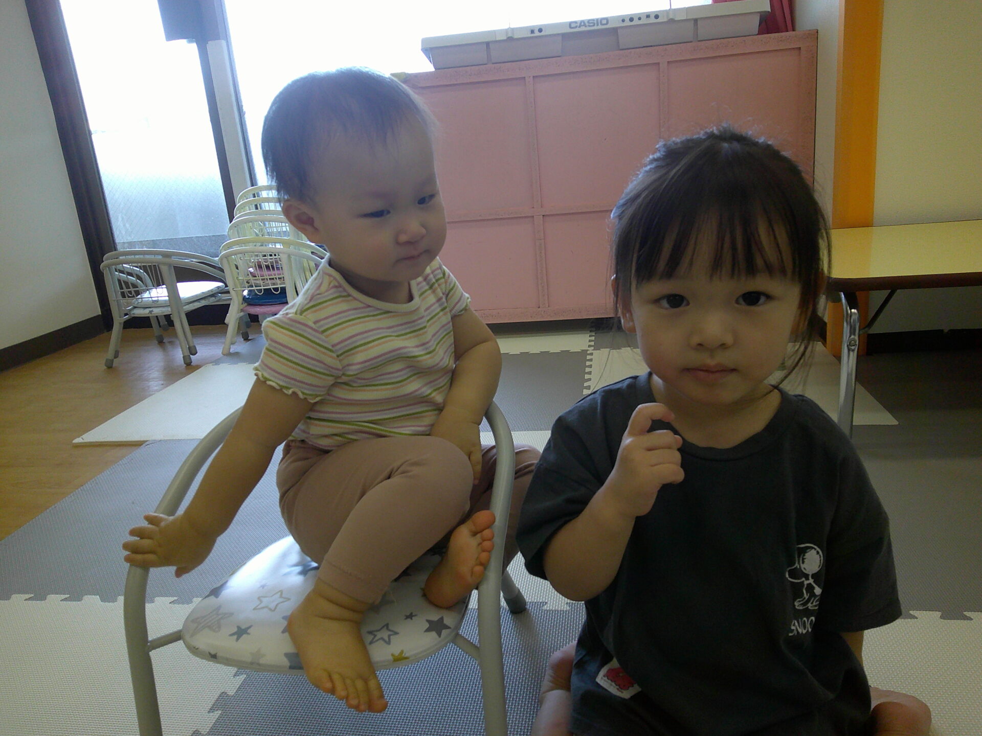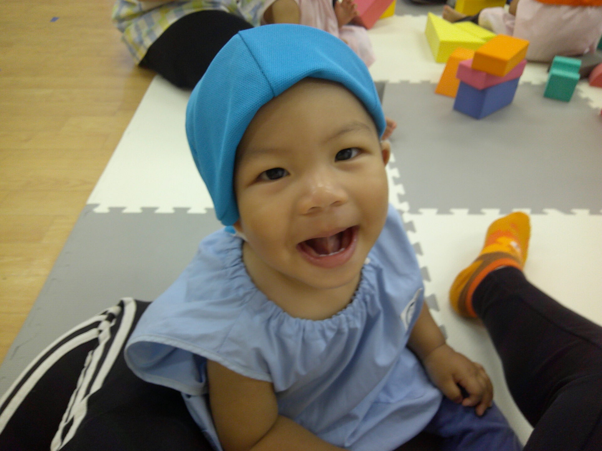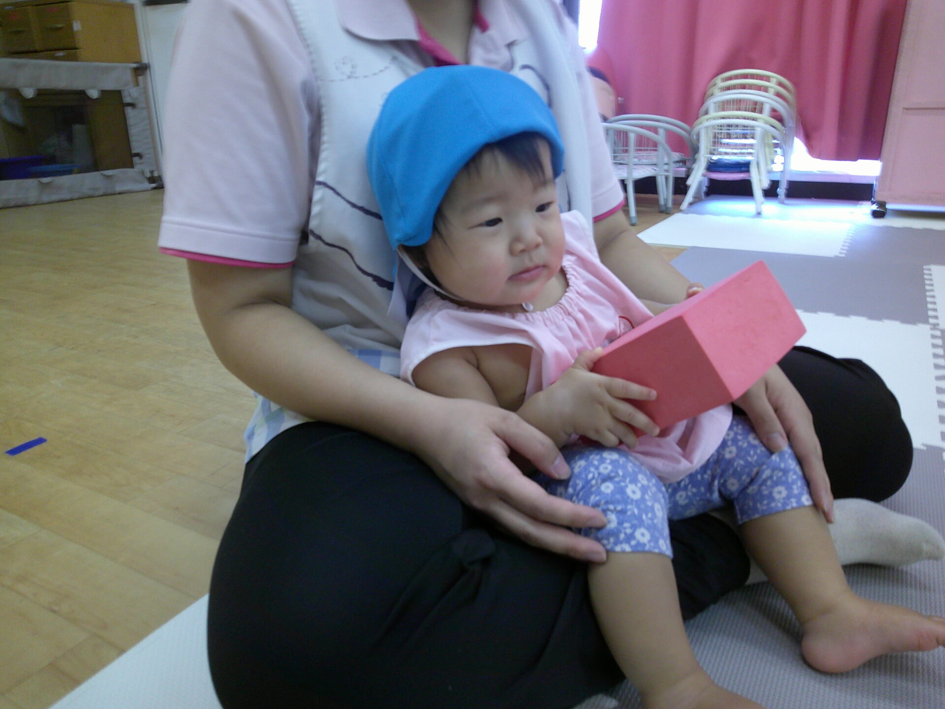 保育者のお膝の上でご機嫌で遊んでいましたよ😊