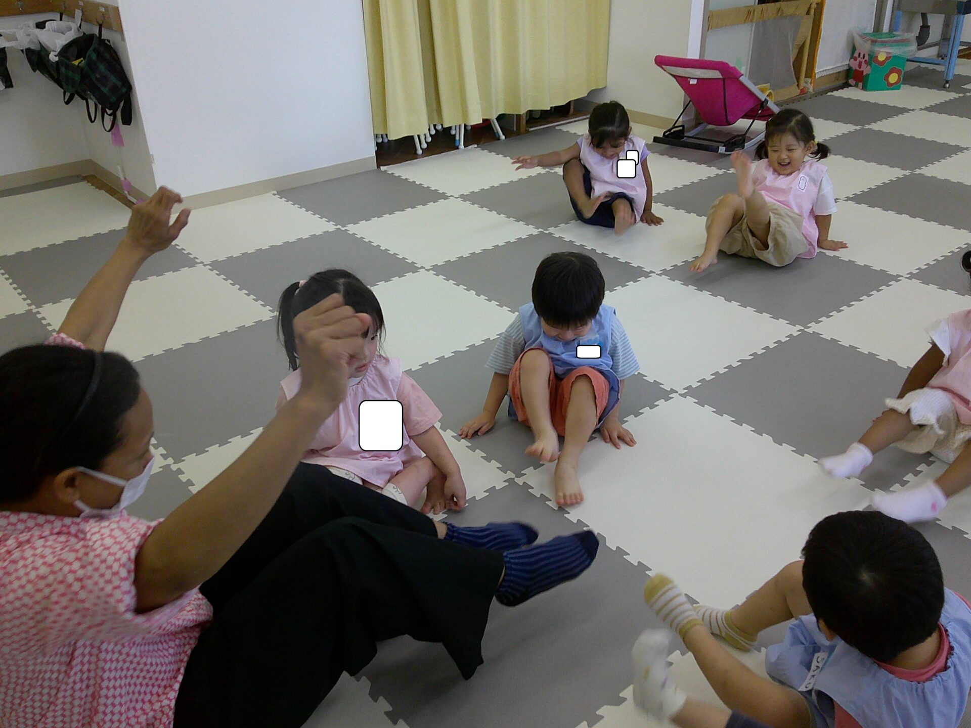 うさぎ組さんひよこ組さんに「行って来まーす!」第2のお部屋に移動しました。