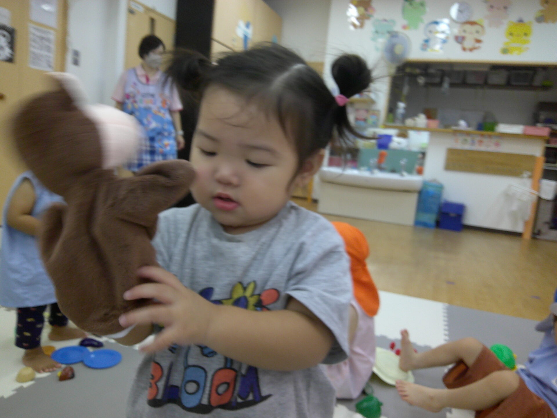 今日は、こあら組のリクエストでおままごとやお人形さんで遊びましたよ。