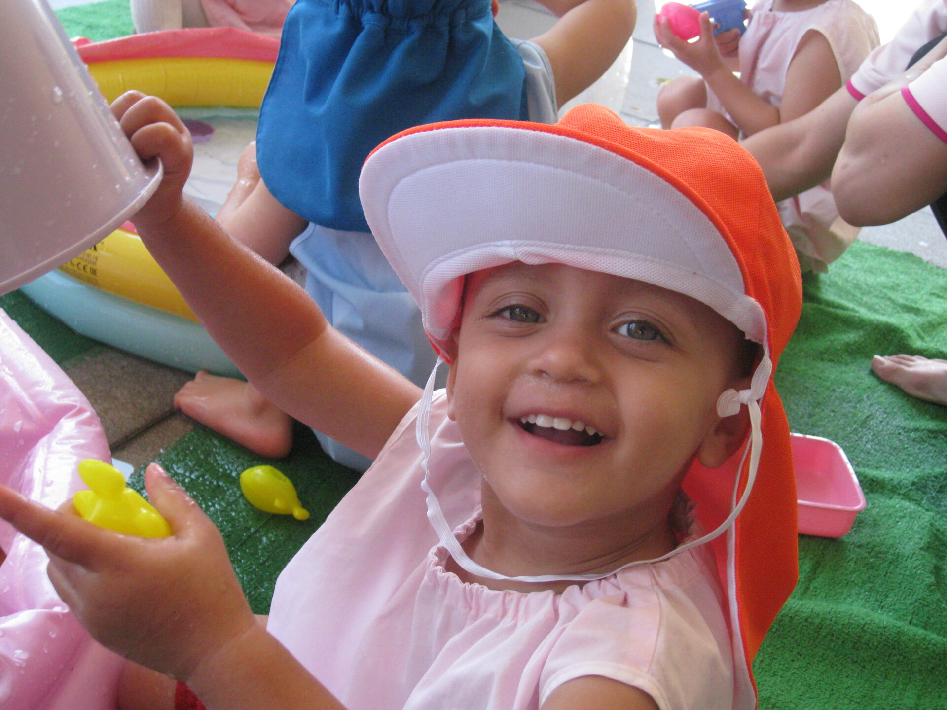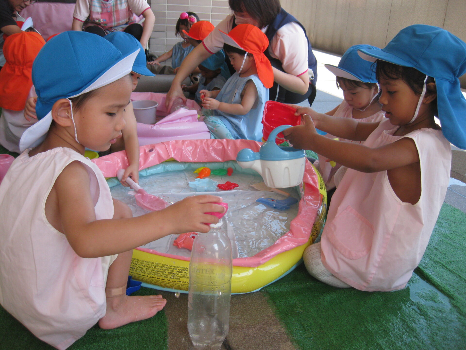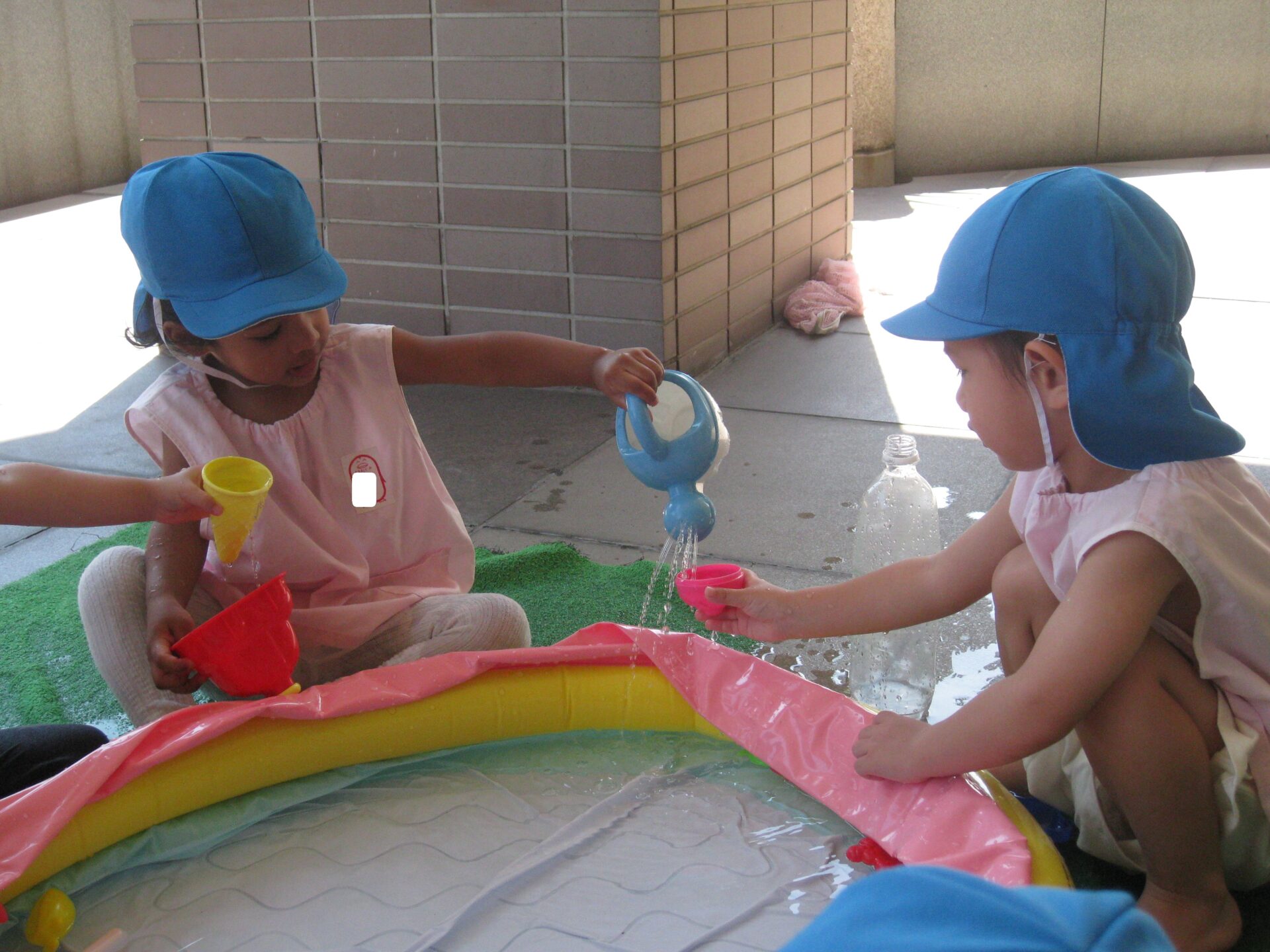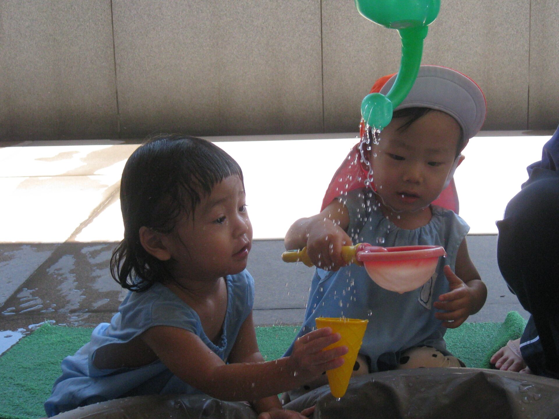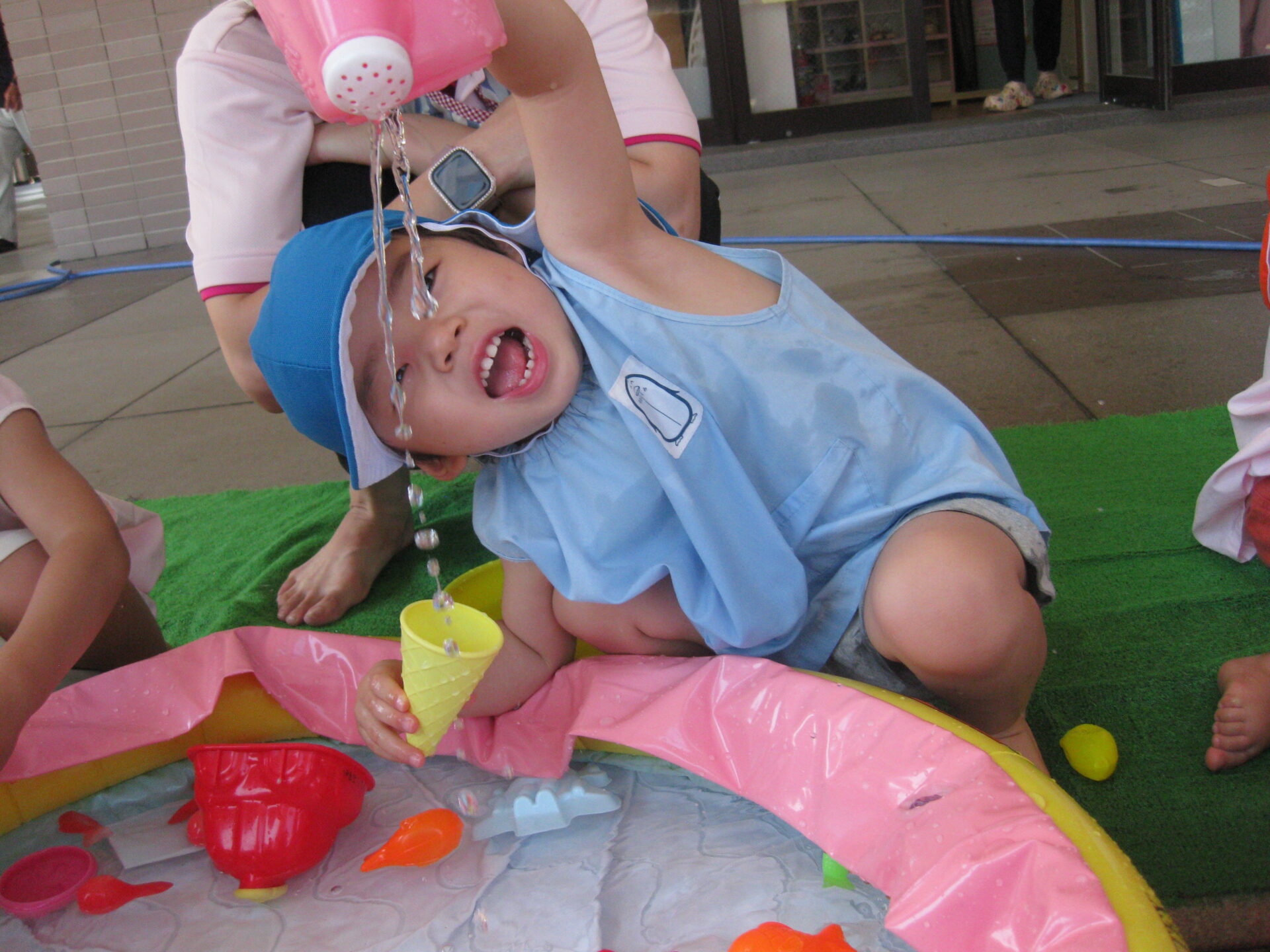 こちらは先生が降らせるお水を一生懸命キャッチしようとするうさぎ組さん🐰