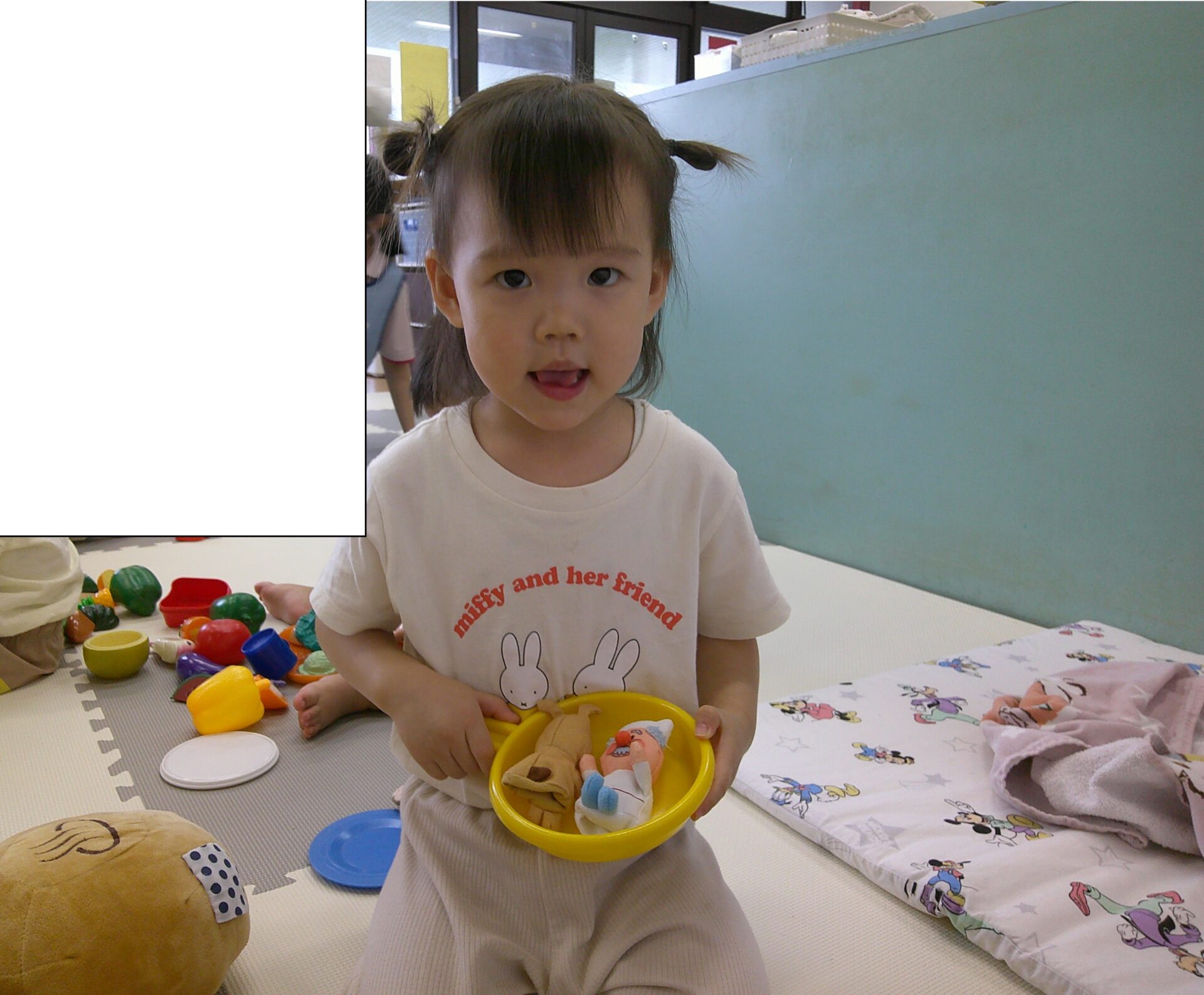 ひよこ組さんとうさぎ組さんは、お部屋で第2のお友達とアンパンマンなどのお人形やおままごとをして遊びました😊