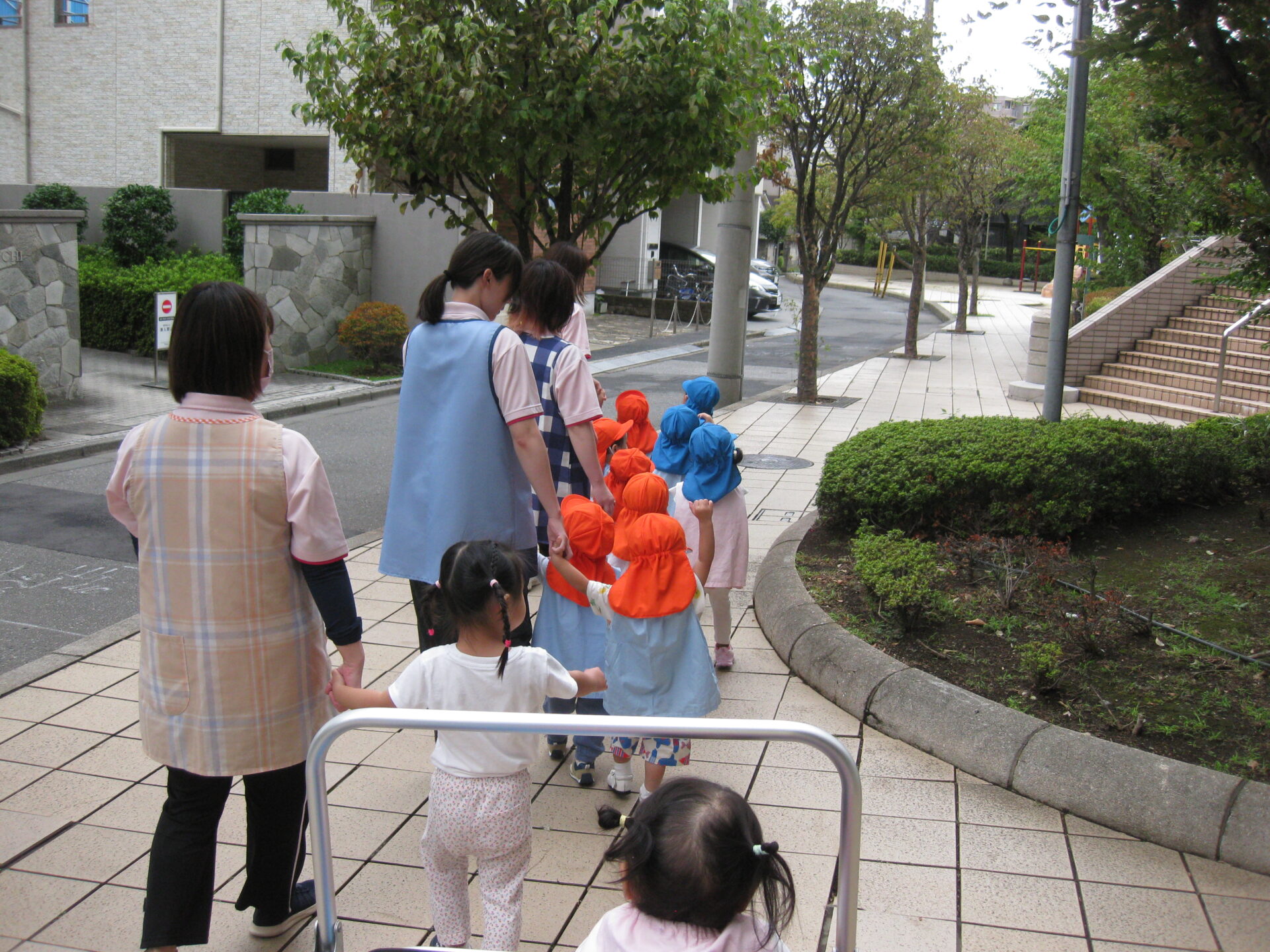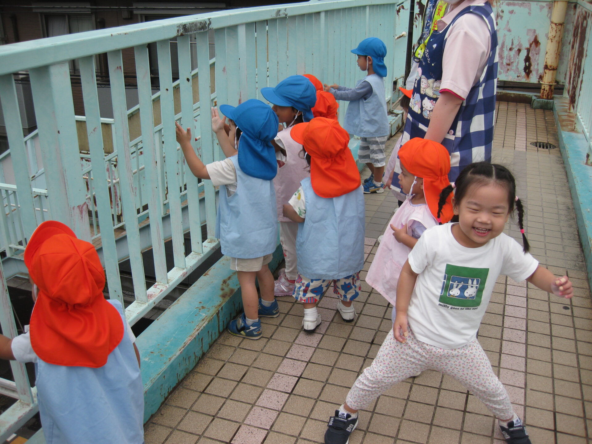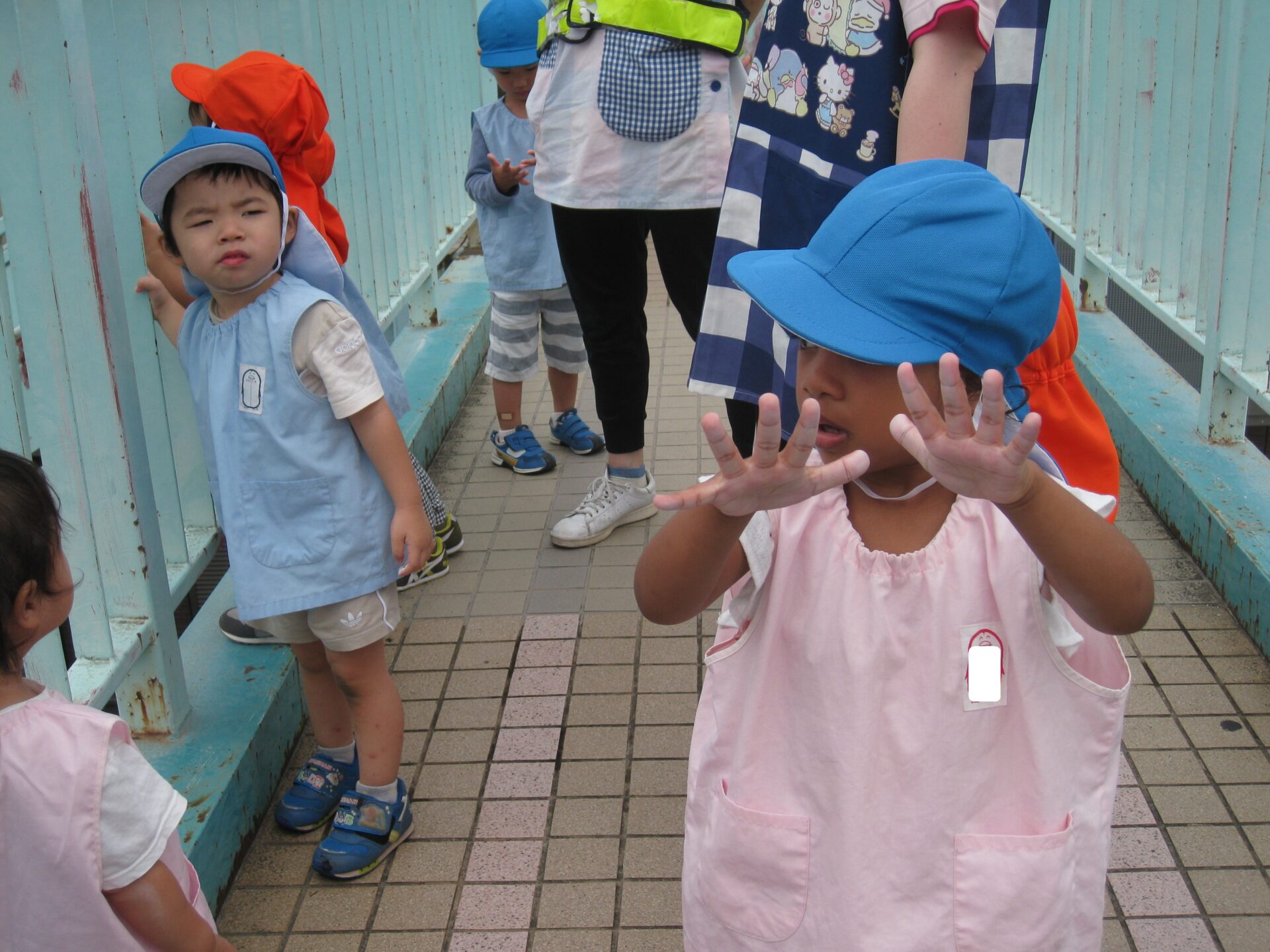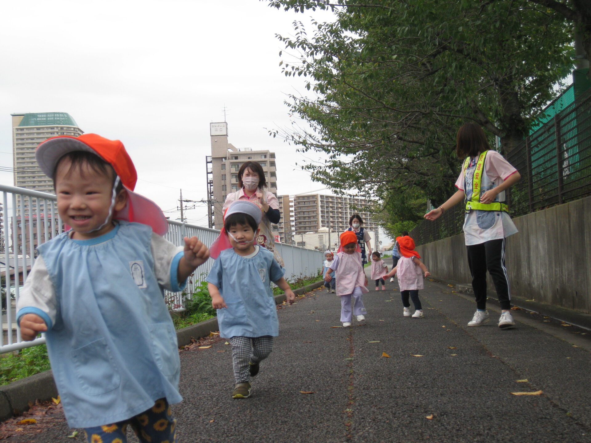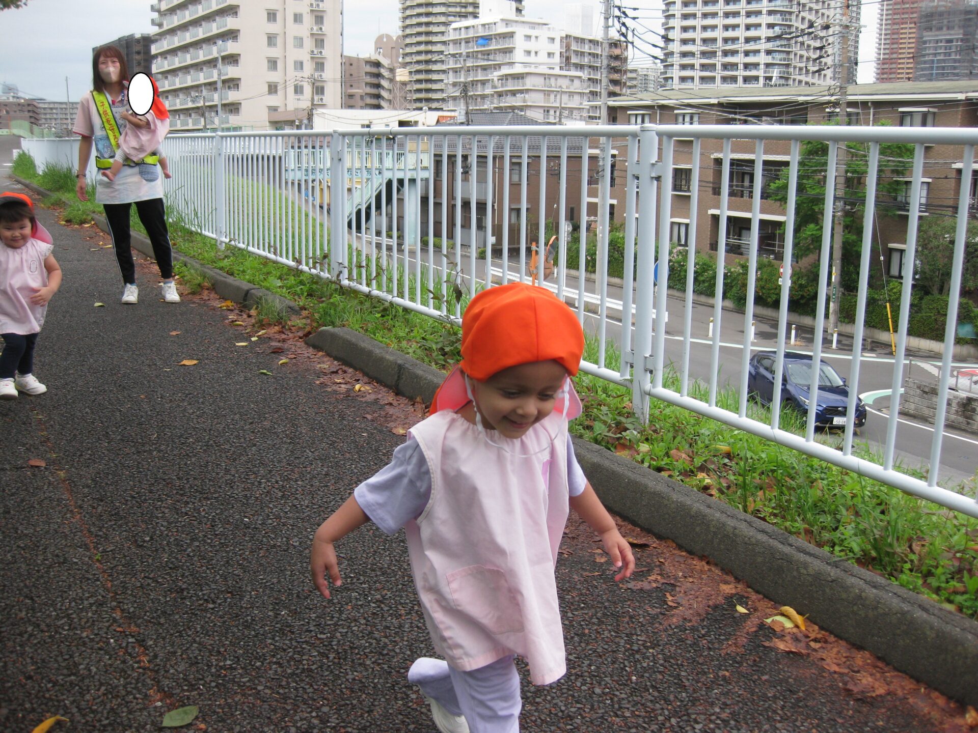 第2保育室のお友だちは、土手までお散歩に行きましたよ。