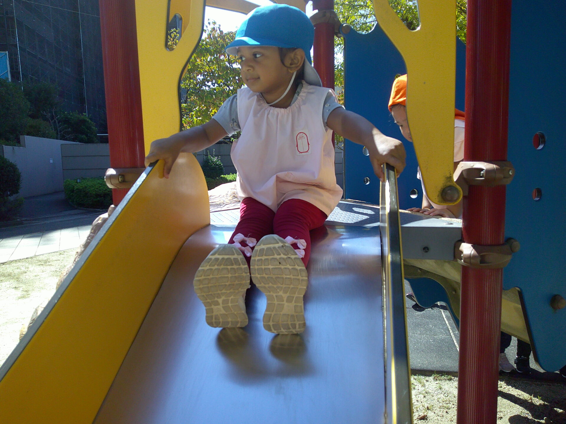 昨日より気温が高く暑かったですが、みんな頑張って先生やお友達と手を繋いで歩いたり、遊具の登るのも以前に比べて手や足の力も強くなって上手に登ってすべり台も楽しそうに何度も滑っていました🤗