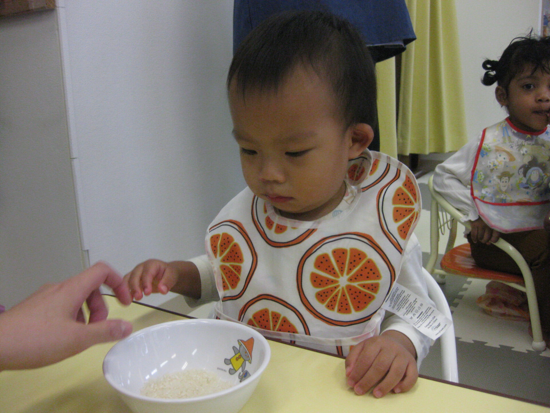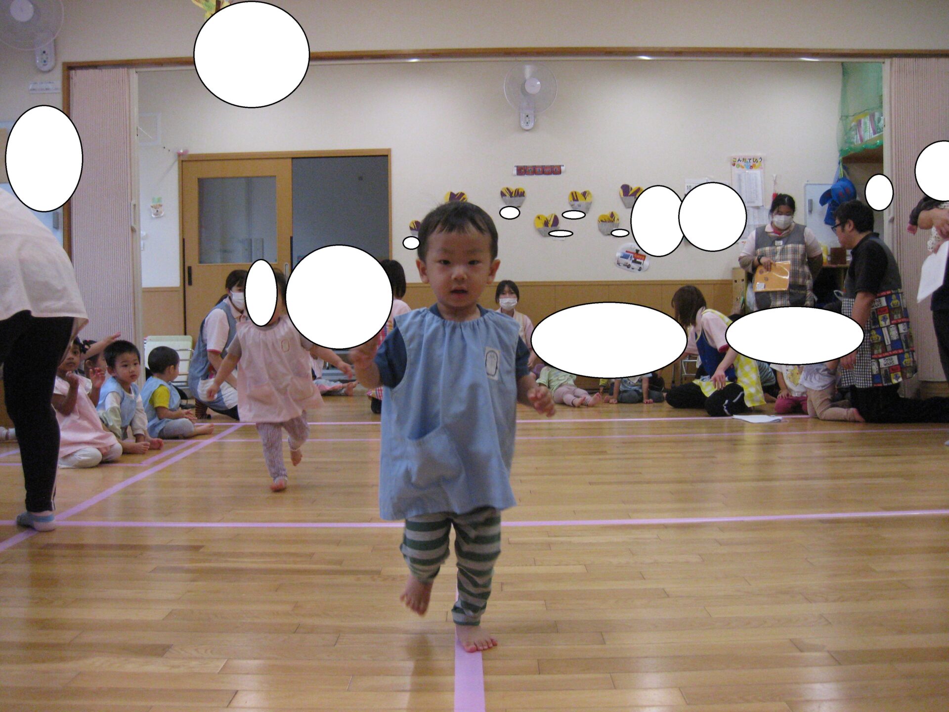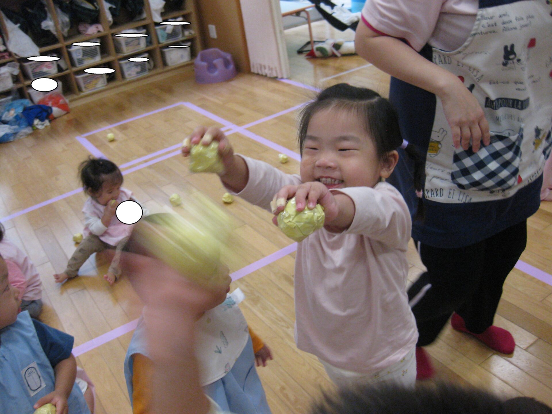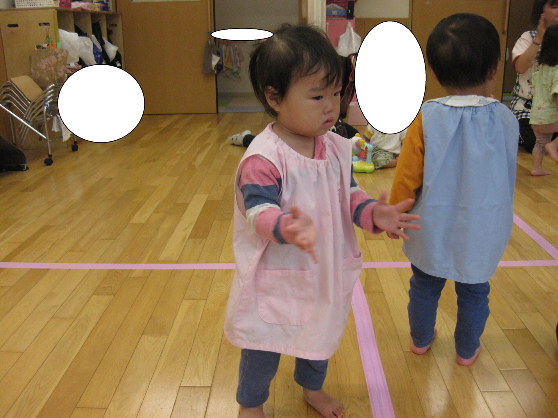 保育室に入ると少し緊張し始めソワソワ…..