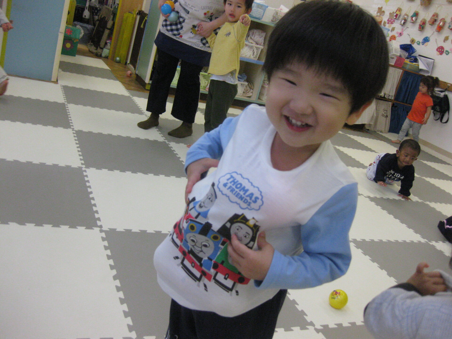 今日はお部屋でボール遊びをしました!