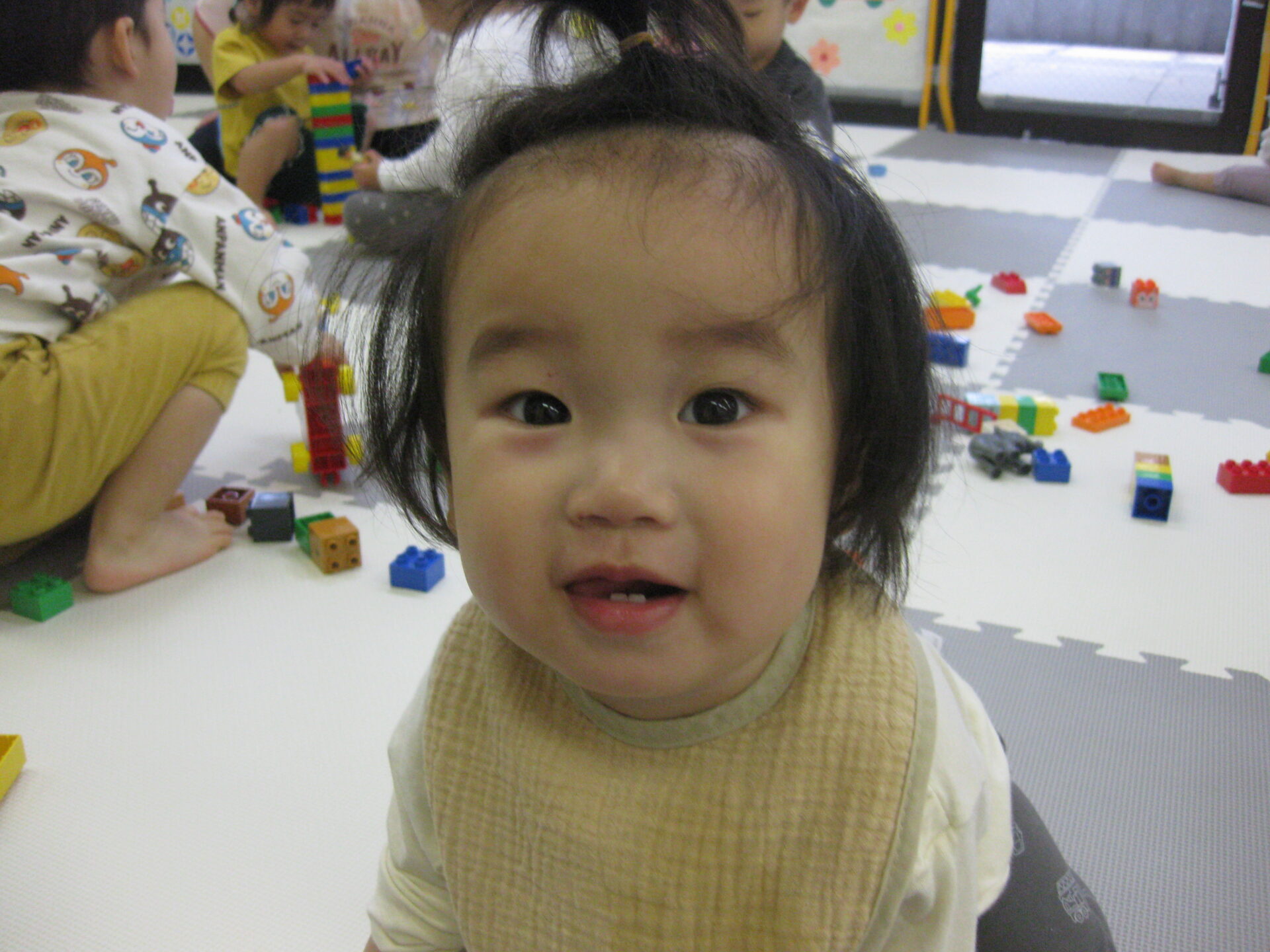 ブロックに夢中なところ、お名前を呼ぶとカメラの方を向いてくれたお友だち📸✨
