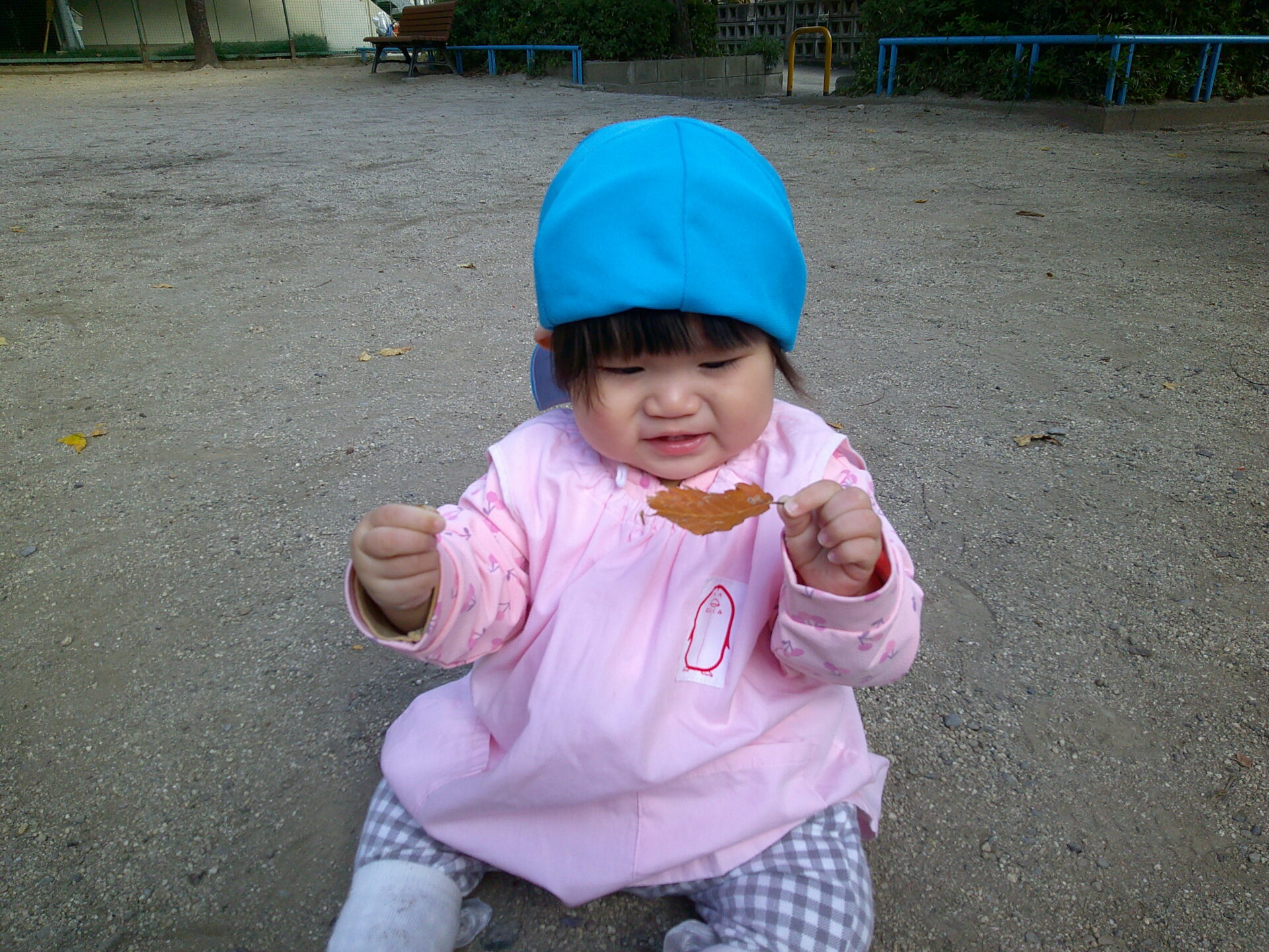 落ち葉を拾ったようで嬉しそうににこにこしながら先生に見せてくれました🍂