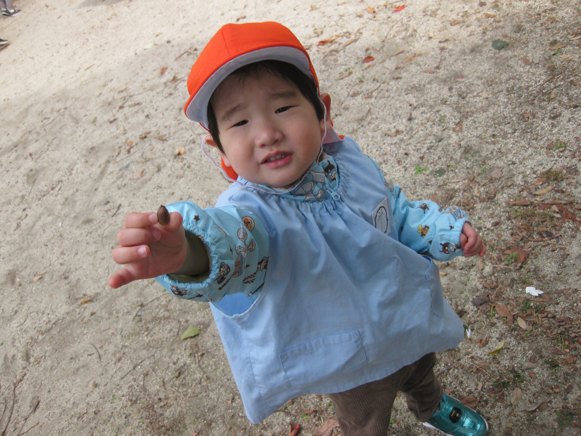 どんぐりや落ち葉がたくさん落ちていて、拾って嬉しそうに見せてくれました✨